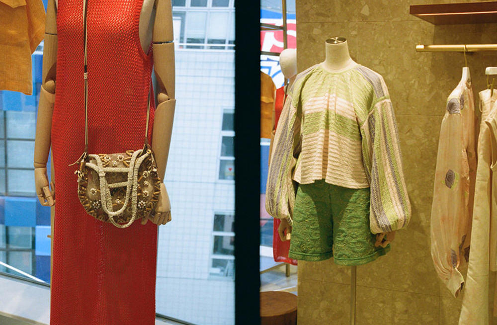 渋谷PARCO店の入り口には、人気ブランドとのコラボレーションアイテムがずらりと並ぶ。どのコラボレーションも、カルチャーとファッション、女性らしさが適度に融合されたスペシャルなアイテムばかり。カタカナTシャツやキャップなどの「agnès b.」とのコラボや、削ぎ落とされたデザインが魅力の「CONVERSE」とのコラボなど、どれも魅力的。注目の「CLINQ」のヘアクリップはハンドメイドによる独創的なフォルム。その存在感は、スタイリングのキーとなってくれるはず。