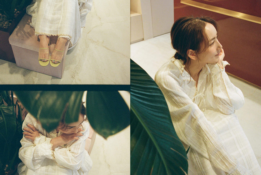 <UNTITLED CO.>ワンピース¥48,000+tax、<MOTHER>パンツ¥28,000+tax、<Maryam Nassir Zadeh>サンダル¥68,000+tax