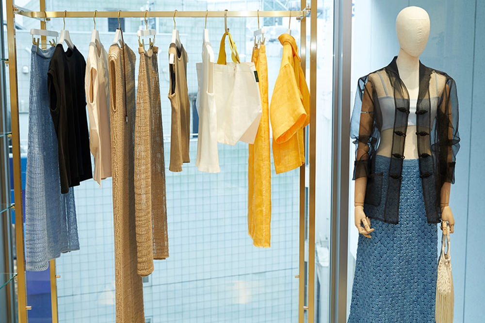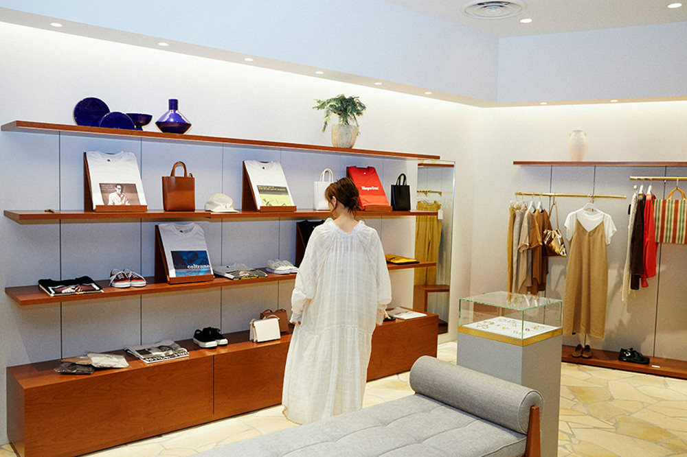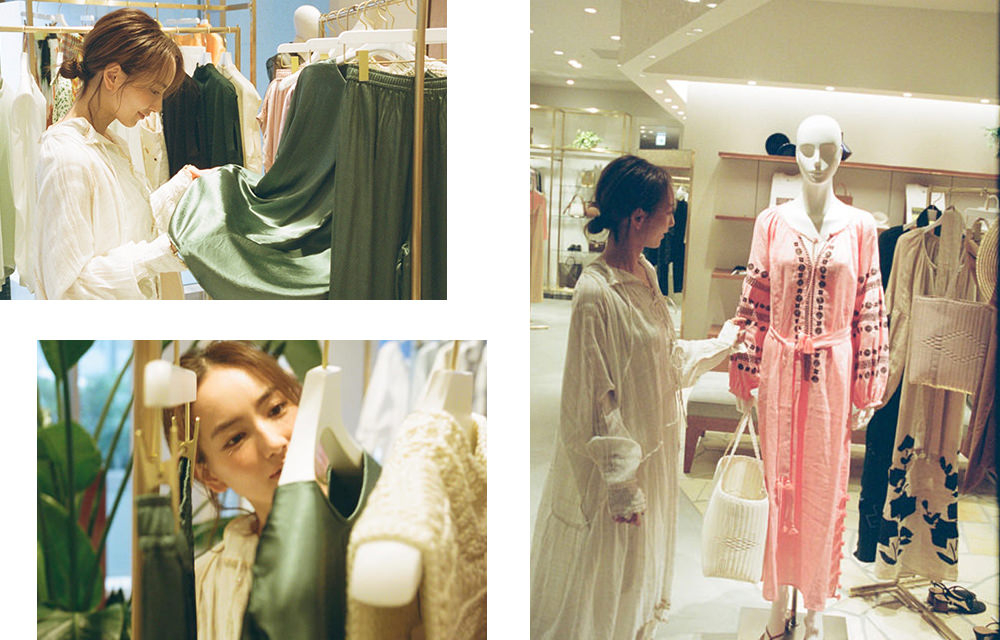 ADAM ET ROPÉ FEMMEのシーズンテーマは「Current Elegance」。情報社会の中でつくられた流行ではなく、昔から伝えられてきた服飾文化本来の豊かさを現在の目線で見直し、再構築。多様性溢れるコラボレーションから、気鋭のブランドまで幅広いセレクトの根底にあるのはファッションへの真摯な想い。「ショップ入り口に並ぶさまざまなコラボレーションのTシャツやスニーカーから、女性らしいワンピースやジュエリーまで、オンオフどちらの気分にも寄り添うアイテムが揃っているのが嬉しい」