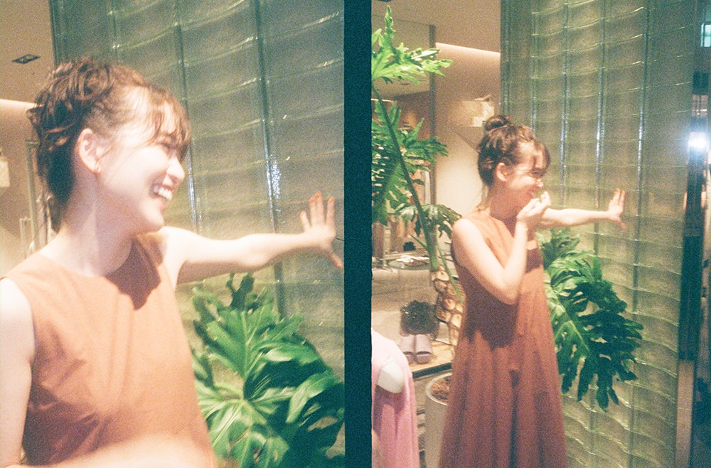 ゆうこすさんは、プライベートでもしょっちゅうSNIDELを訪れているそう。彼女が選んだアイテムは、スモーキーピンクが大人可愛いロングワンピース。「ピンクは甘くなりがちだけど、このワンピースは大人っぽく着られるのが嬉しいですね。一見シンプルなのに、歩くたびにしなやかに揺れるスカートの優雅なシルエットもお気に入りです」。ヘルシーな肌見せと後毛をふんわりさせたナチュラルヘアも、ゆうこすさんのこだわりポイントとのこと。
