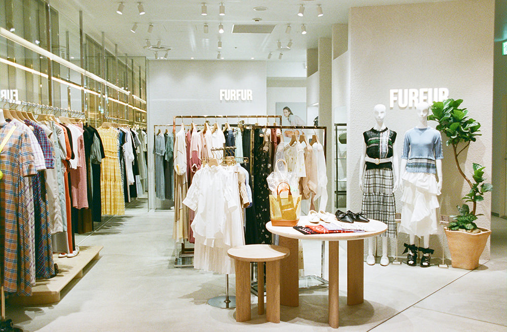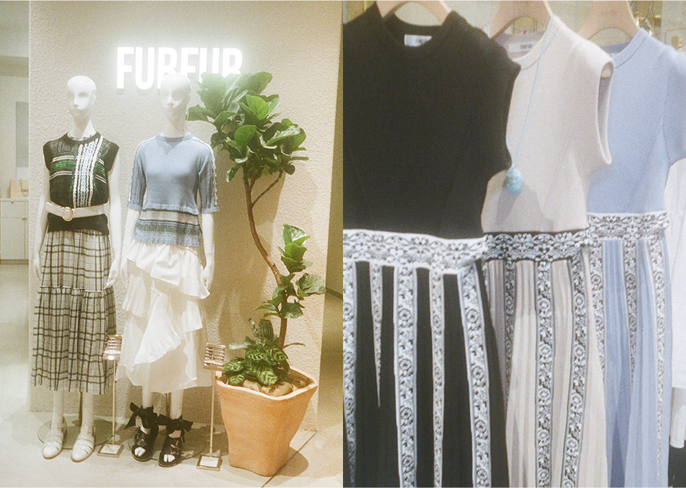 女性らしい洗練されたスタイルに、少しのユーモアとモードのエッセンスを盛り込んだオリジナリティ溢れる世界観が魅力の「FURFUR」。ブランドコセンプトに”Feminine mode wears" を掲げ、編地の変化を楽しんだニットや立体的なカッティング、予想外の素材を組みわせた個性的なデザインのものなど、1点1点に物づくりのストーリーを感じさせてくれる。「良い意味でエッジの効いたアイテムが多く、1点投入するだけでいつものコーディネートがグンと華やかになります」と語るゆうこすさんは、撮影中もショッピングを自由に楽しんでいた。