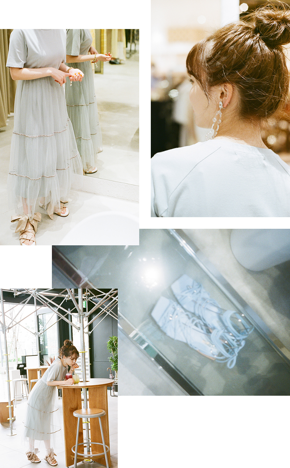 ワンピース ¥18,000+tax、イヤリング ¥10,000+tax、ブレスレット ¥5,000+tax、シューズ ¥21,000+tax