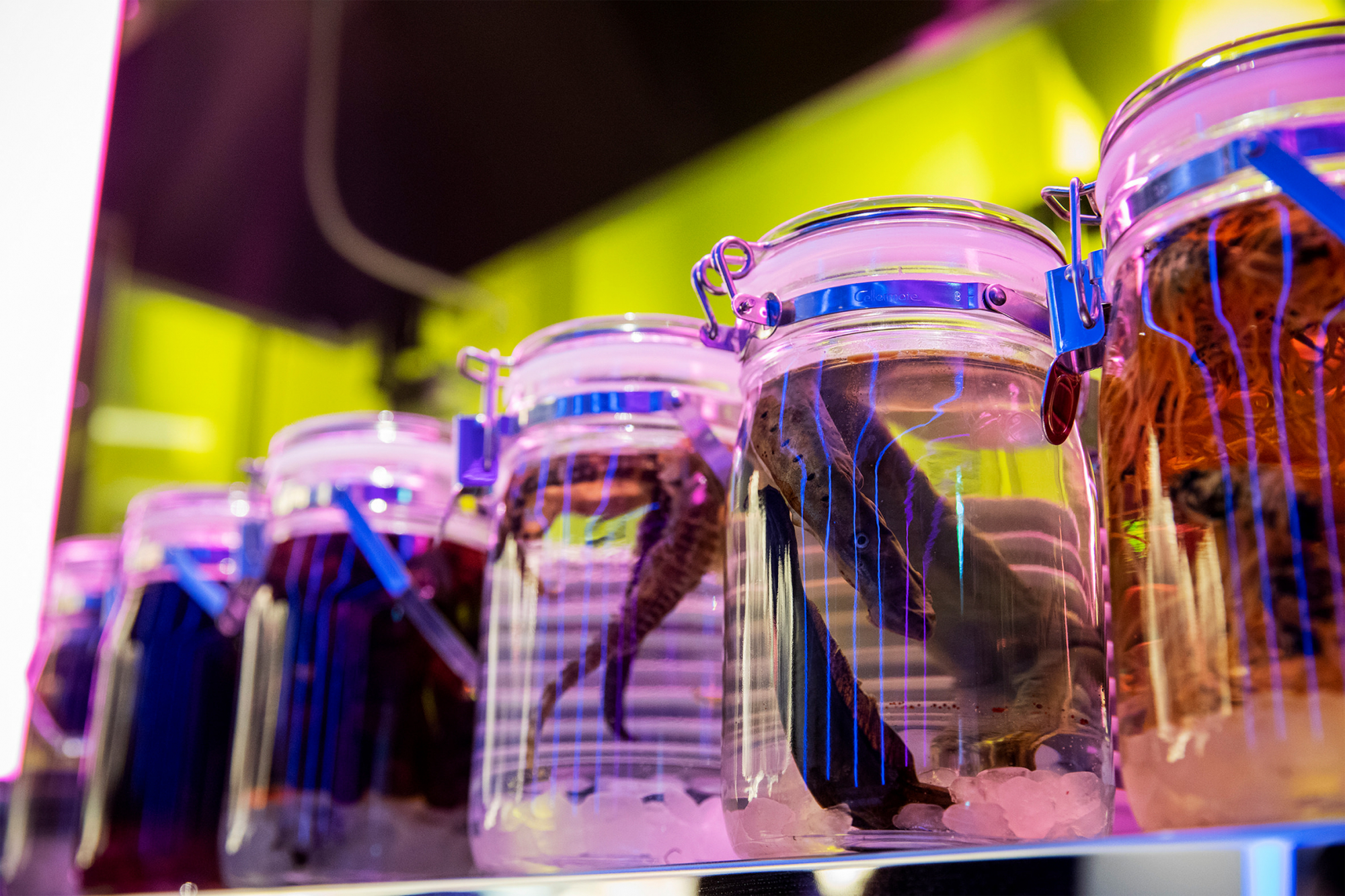 カマキリの卵、ヤツメウナギ、冬虫夏草などの自家製の滋養強壮酒