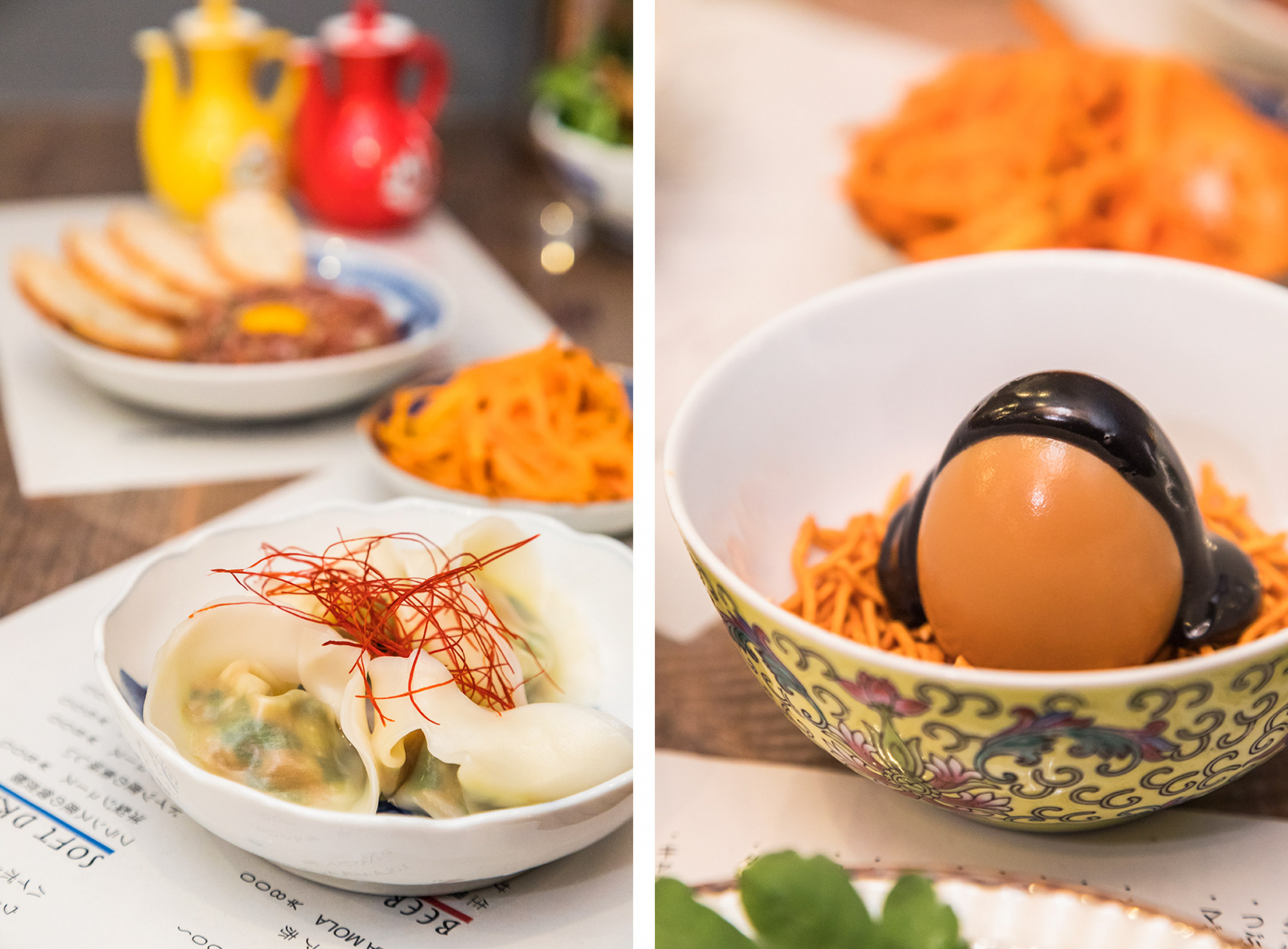 そこで提供される料理は、『Ata』の得意とする魚介を使った料理を中心に、お店の目玉メニューでもある水餃子、オーブン料理など。エネルギッシュなアジアの屋台を彷彿させるように、メニューランナップや味付けにアジアの要素が織り込まれている。