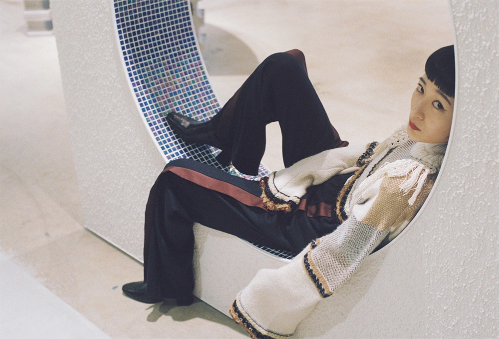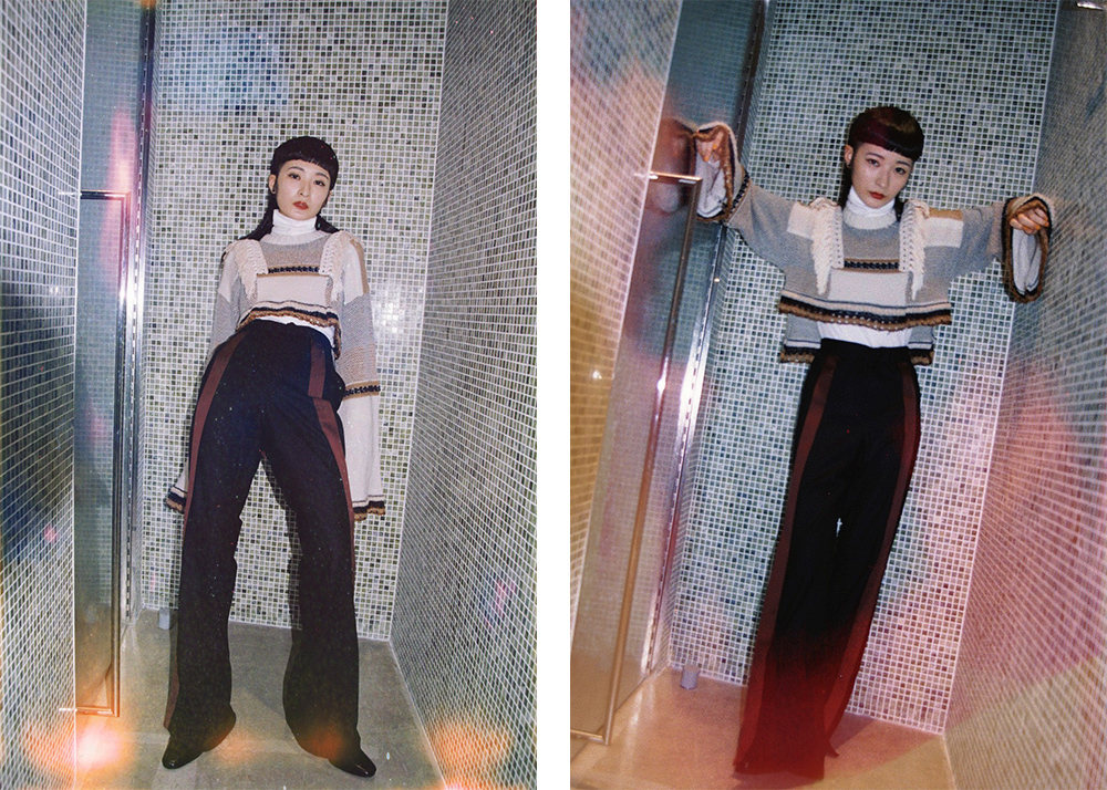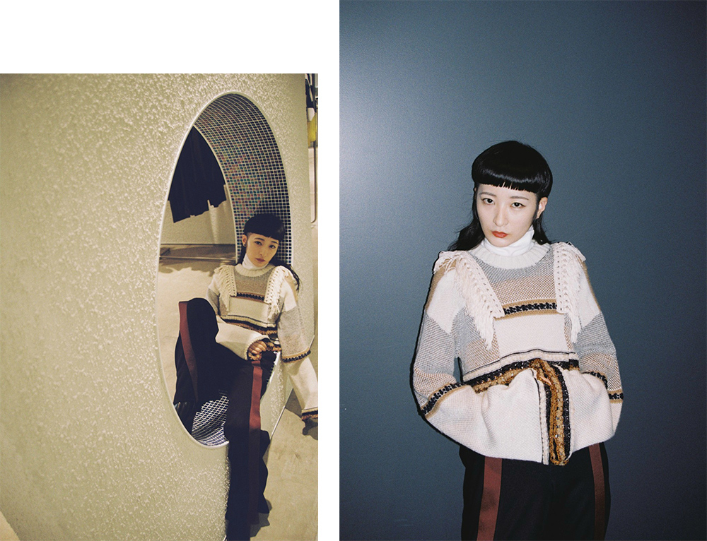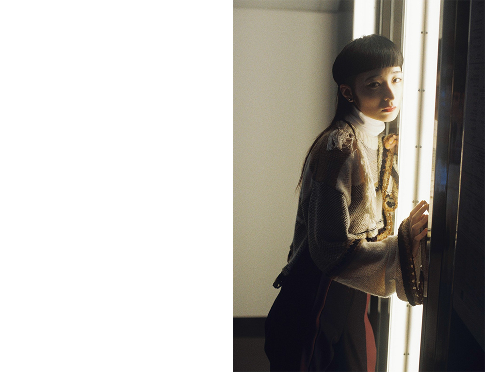 感度の高い男女が好むセレクトが魅力の「Lui's/EX/store」。今回、リンリンさんが着用したのは、LENZ のニットとパンツ。2020 AWにLENZ が掲げるテーマは「GHOST RANCH」で、画家のジョージア・オキーフに着想を得た“芯の通った美しさ”を表現している。コーディネートについてリンリンさんは「糸の色使いとフリンジに惹かれて選びました。トップスの丈の短さとパンツの形のバランスも気に入っています」とコメント。細かいディテールまでチェックし、彼女らしく着こなした。