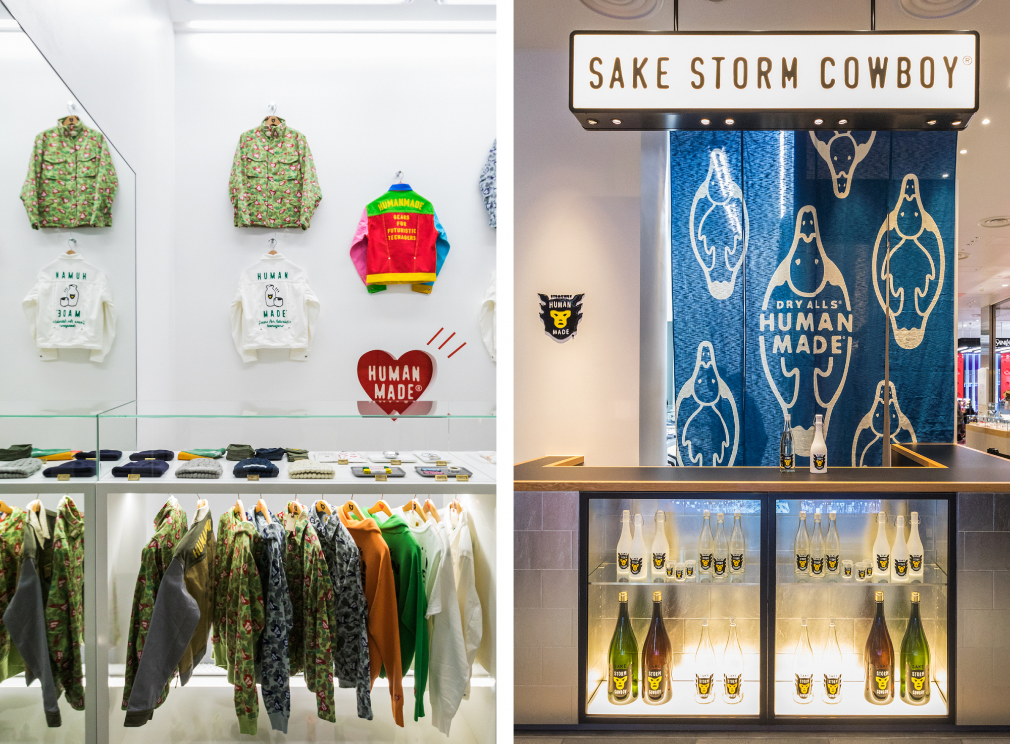 NIGO®がディレクションするレーベル『HUMAN MADE®』の渋谷PARCO店の目玉は、NIGO®とファレル・ウィリアムスがプロデュースした日本酒ブランド「SAKE STORM COWBOY®︎(サケストームカウボーイ)」。