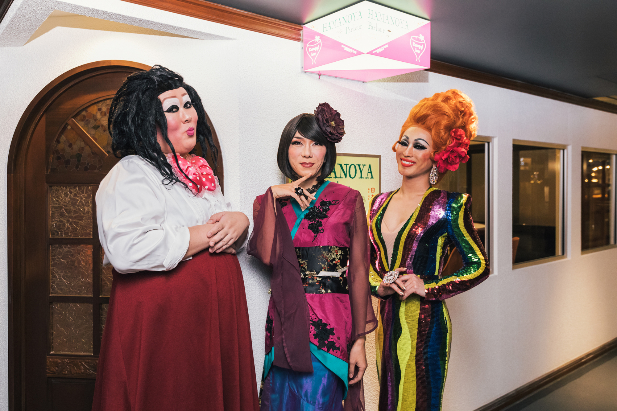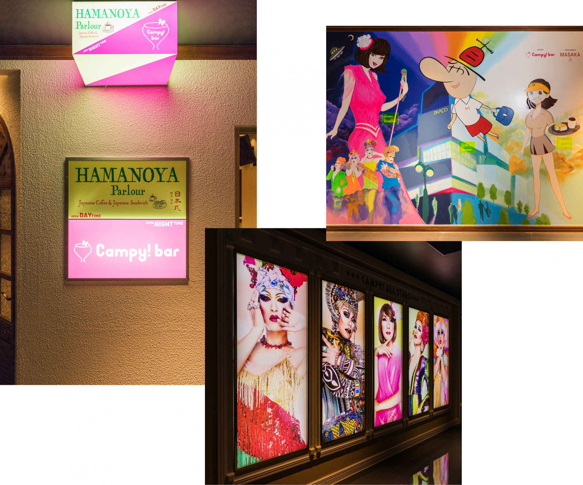 『はまの屋パーラー』といえば、有楽町や帝国ホテルに店舗を構える創業53年の老舗喫茶店。一方の『Campy!bar』は、新宿二丁目の地で妖艶なドラァグクィーンが最高のエンターテインメントを演出してくれるミックスバーだ。