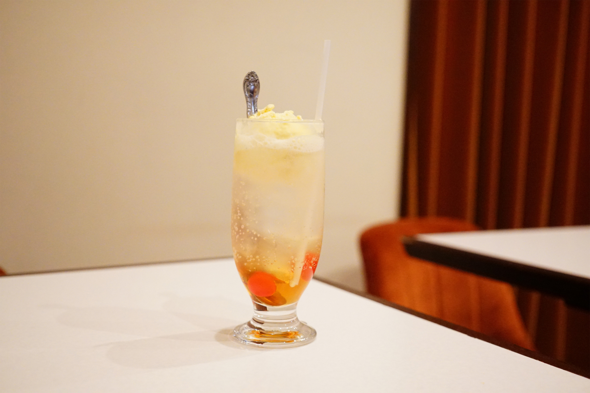 淡いピンクがかわいい「はまの屋特性クリームソーダ」
