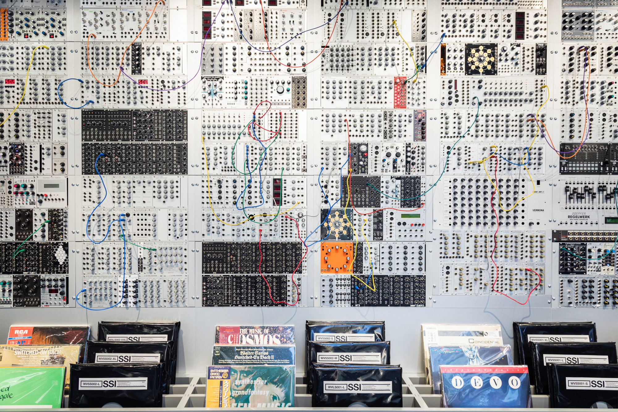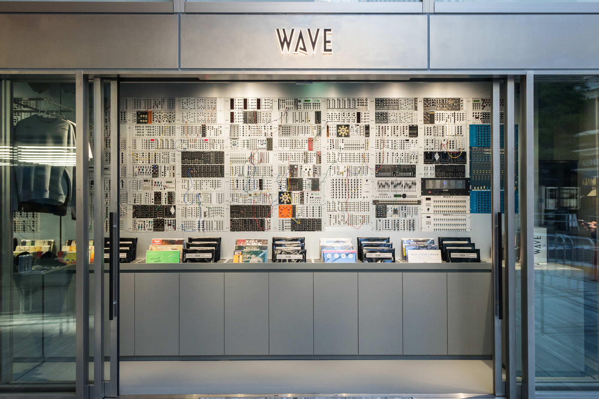 渋谷PARCO1FのWESTとEASTをつなぐ「ナカシブ通り」に面した一角に突如現れる約400ものモジュラーシンセを使用した壁が目印だ。