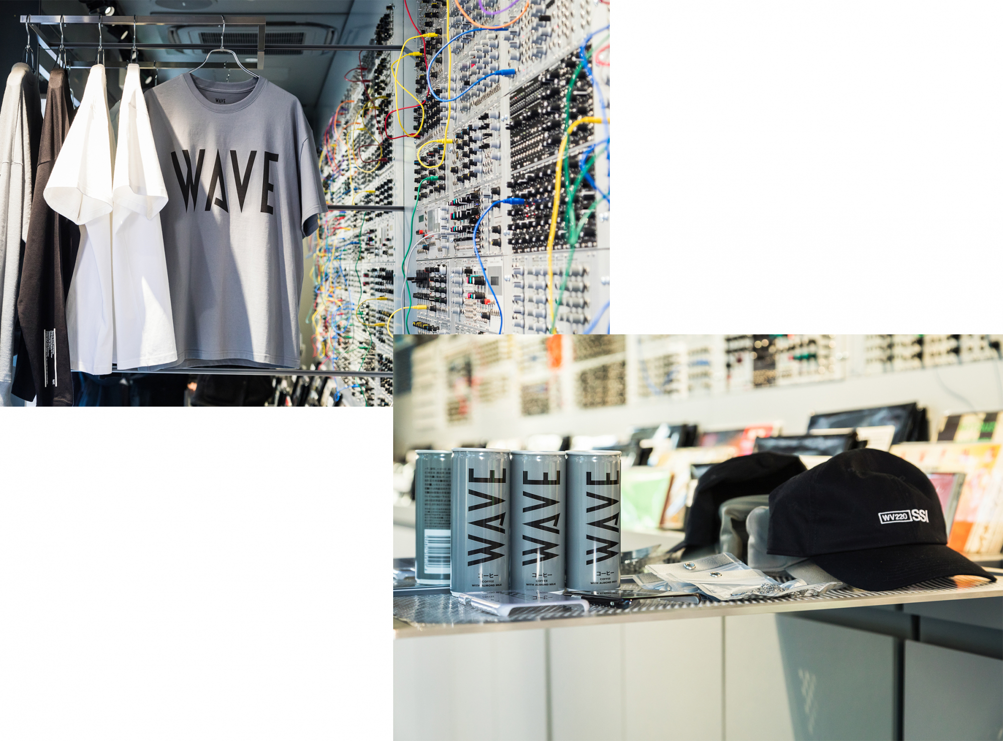 販売するアイテムは、12インチレコードのパッケージに入ったTシャツやキャップなどのアイテムから中古レコード、WAVEオリジナル缶コーヒーなど。
