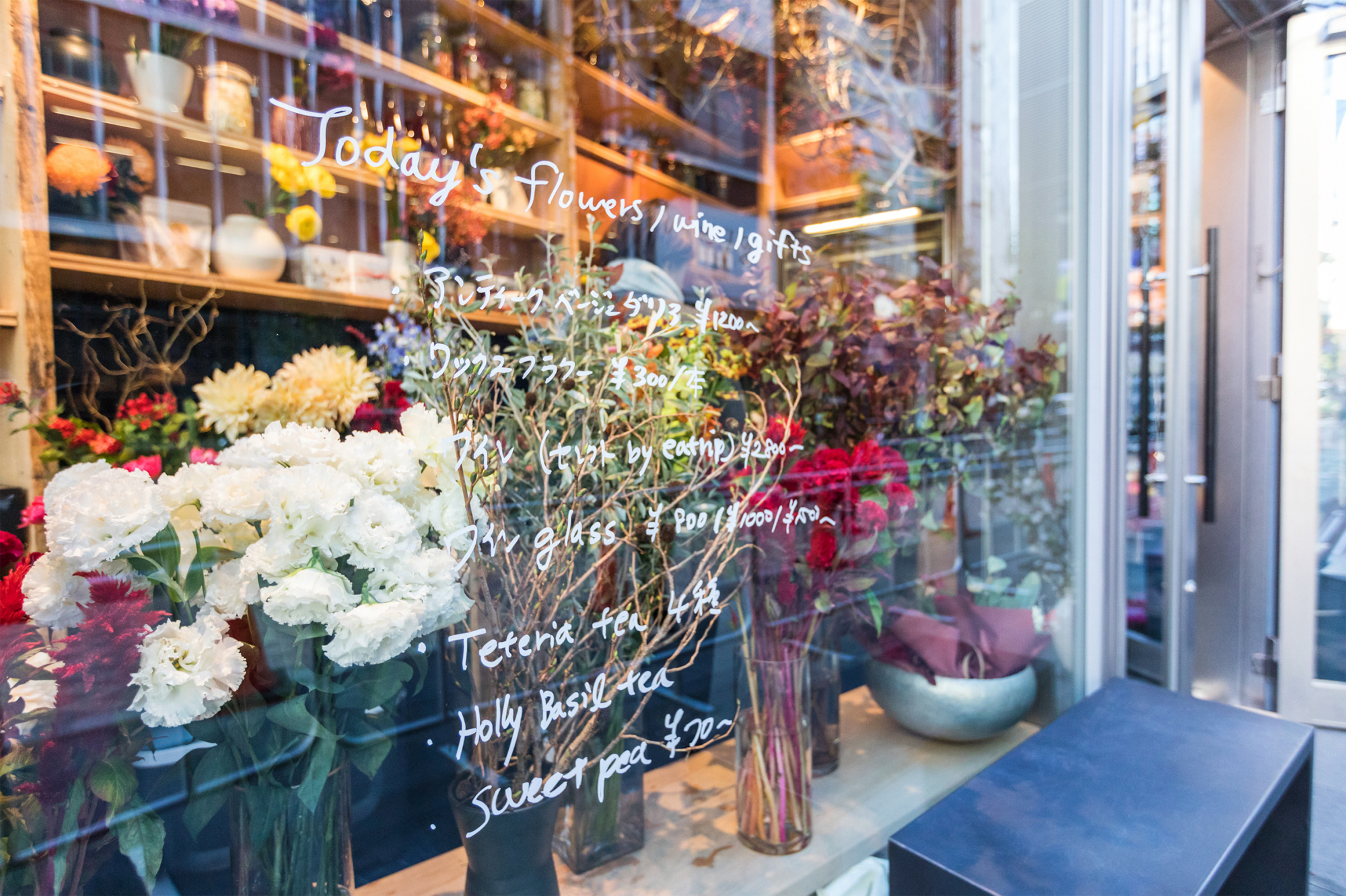 - 営業時間:フラワーショップ 10:00~19:00/ワインショップ 19:00~0:00