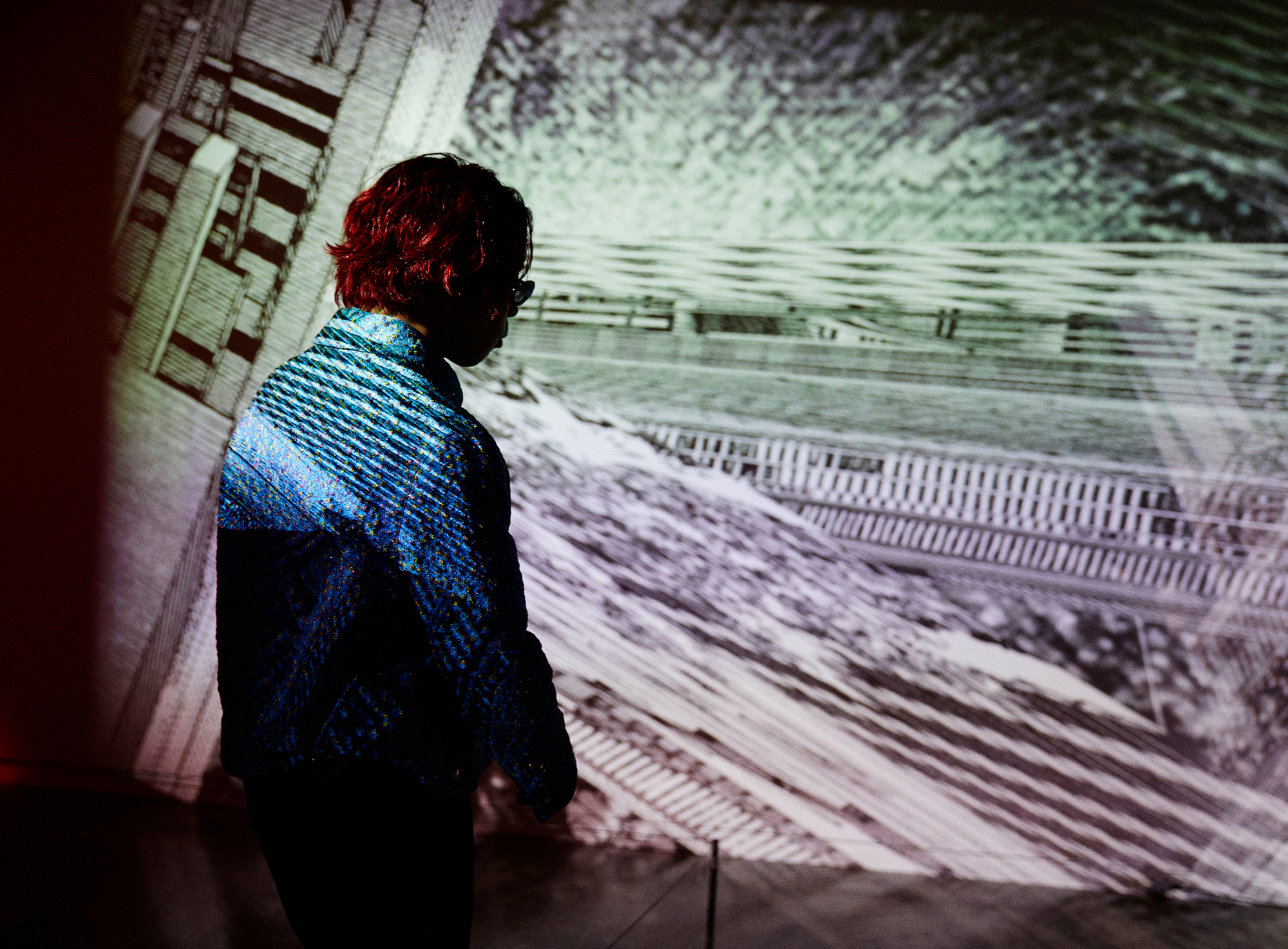 そんなレイジさんのやりたいことが山積みになっている「GALLERY X」では、現在4Fにあるギャラリースペース「PARCO MUSEUM TOKYO」と連動して、アートエキシビション“AKIRA ART OF WALL Katsuhiro Otomo × Kosuke Kawamura AKIRA ART EXHIBITION”が開催されている。「GALLERY X」では、「AKIRA」の登場人物、鉄雄が巨大化した様子の巨大オブジェが展示され、グラフィックアーティスト YOSHIROTTEN氏が率いるクリエイティブチームYARが空間を演出。「とにかく映像と音楽による演出がめちゃくちゃカッコいい! ライブハウスやクラブみたいに、いい音楽が鳴っている薄暗い場所が好きなので、ずっとココにいたいと思うほど心地よかったです」とレイジさん。続いて、4Fの「PARCO MUSEUM TOKYO」へ。ここでは、リニューアル工事中に設置されたART WALLを再度コラージュした作品から、原画やポスター、さらには作中に登場する椅子までが展示されている。「こっちも空間自体を作品にしていてカッコよかった! あと、河村さんのコラージュ原画もよかった。あんなに細い線を切ったり繊細な作業をしていたなんて」と興奮ぎみに語ってくれた。