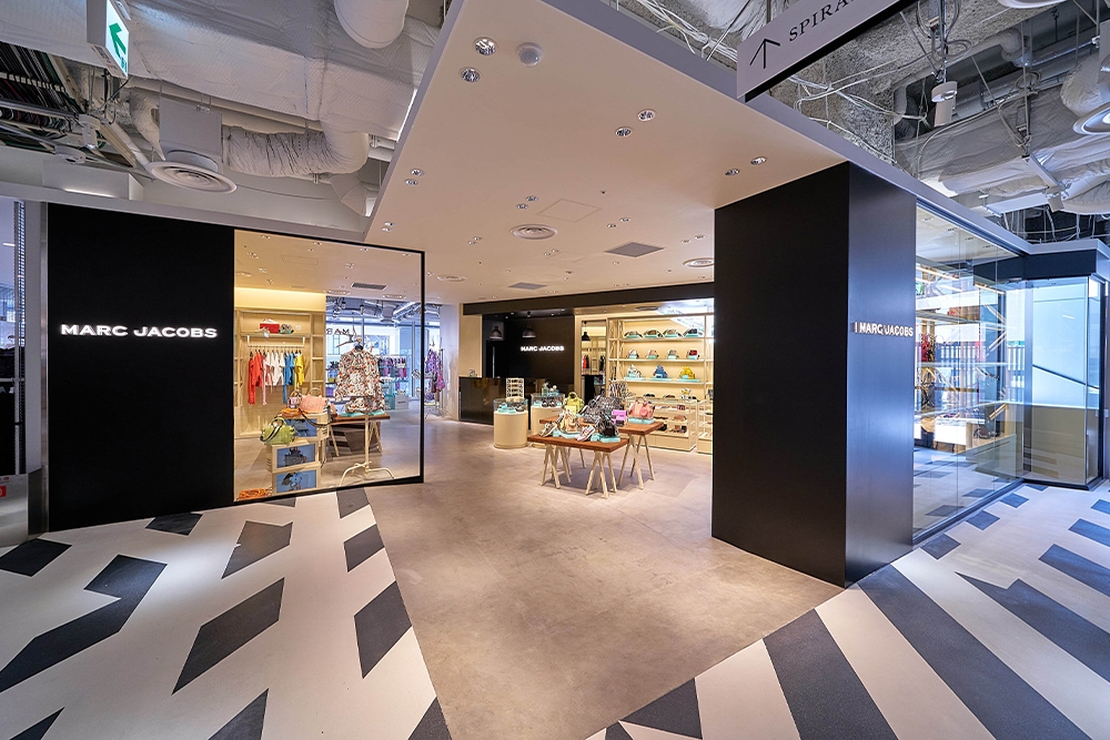 渋谷公園通りに面したウィンドウからも、MARC JACOBS(マーク ジェイコブス)の世界観を垣間見る事ができる渋谷PARCO店。自然光と天井の高さを最大限に活かしたダイナミックな空間では、メインラインはもちろん、2020年にデビューしたジェンダー・フルイドなHeaven by Marc Jacobs(ヘブン バイ マーク ジェイコブス)、人気アイコンバッグのTHE SNAPSHOTやTHE TOTE BAGなどが、個性豊かなディスプレイと共に楽しめる。世界でもオンリーワンの店内では、アイコンキャラ“ダブルヘッドベア”のオブジェやネオンサインなどの最新エレメントも見どころだ。