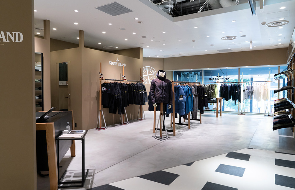 “スポーツウェアの頂点へ”という志のもと、1982年に誕生したイタリア発のSTONE ISLAND(ストーンアイランド)。創業以来、素材と構造についての研究と実験を続け、機能的で洗練されたウェアを展開している。研究のなかでも特筆すべきは染色技術。カラーバリエーションが非常に豊富で、絶妙なニュアンスの中間色も多い。これまでに作り出した染色配合は60,000以上にのぼるという。渋谷PARCO店は、全店統一の異素材を組み合わせたシンプルな空間にウェアを見やすくレイアウト。特に充実しているのはアウターとポロシャツ。多色展開のアイテムが多く、きっと好みの色が見つかるはずだ。
