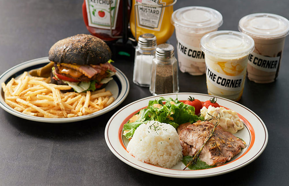 数多くのクリエイターを魅了してきた人気カフェON THE CORNER Shibuya(オン ザ コーナー シブヤ)が渋谷PARCOへ。ニューヨークダイナーの雰囲気を継承し、内装は国内外の店舗設計や建築ディレクションを手掛けるTRIPSTERが担当。季節のフルーツや三浦野菜を使ったシェイクをはじめ、ほうれん草、トマト、カカオを練り込んだカラフルバンズのハンバーガーなど、目にも鮮やかなメニューが揃う。