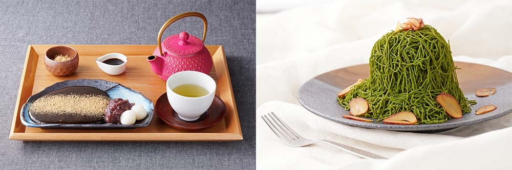 (左)<渋谷PARCO限定>出来立て温わらび餅 玉露ほうじ茶味¥1,380(右)生しぼりお濃い抹茶モンブラン ¥1,650
