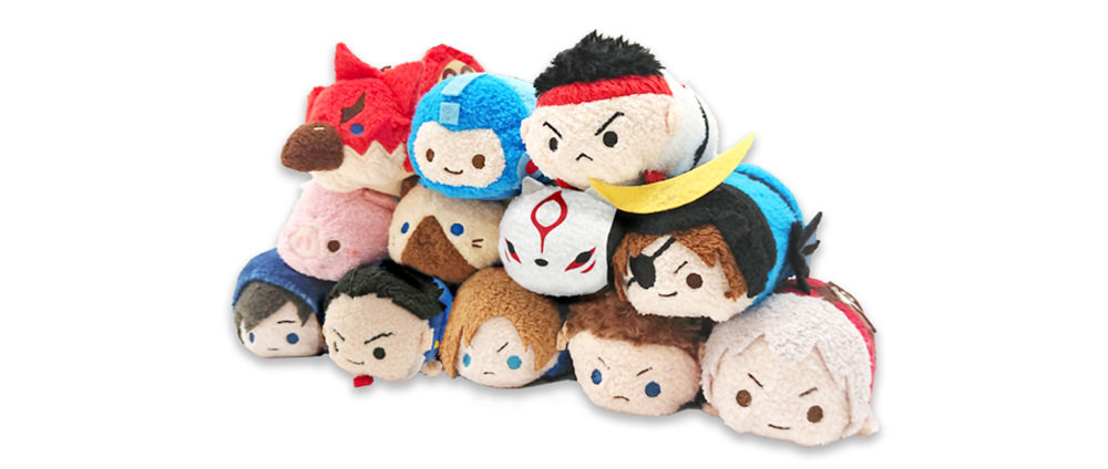 (上)CAPCOM STORE TOKYO メインビジュアルフルカラーTシャツ¥5,000+tax(下)カプころん マスコットぬいぐるみ各¥800+tax