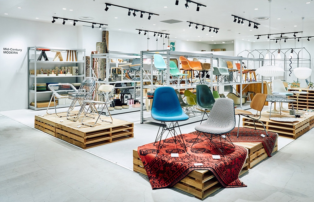 1994年に南青山の骨董通りで開業し、多くのインテリア好きに長い間支持されているセレクトショップ「Mid-Century MODERN(ミッドセンチュリーモダン)」。インテリアの黄金期といわれる1940年代~70年代に活躍した、イームズ夫妻やジョージ・ネルソン、エーロ・サーリネン、ヴェルナー・パントンなど、名だたるデザイナーの家具に加えて、現代作家のインテリア作品まで豊富に取り扱う。なかでも、ミッドセンチュリー期のアイコニックなアイテムである、イームズのシェルチェアは国内屈指の品揃え。ショップではではイームズチェアの張り替えや修理など、経年劣化したヴィンテージのデザイナーズ家具のメンテナンスも可能。そのほか、ヴィンテージインテリアやヴィトラ社などの正規現行品、オリジナルのラグマットにも注目だ。ミッドセンチュリーなインテリアと相性の良い雑貨やテーブルウェアが見つかるのもうれしい。
