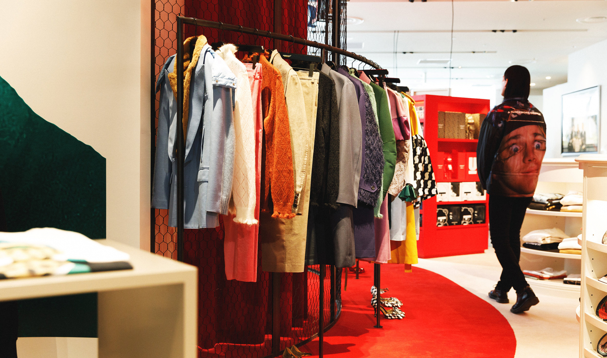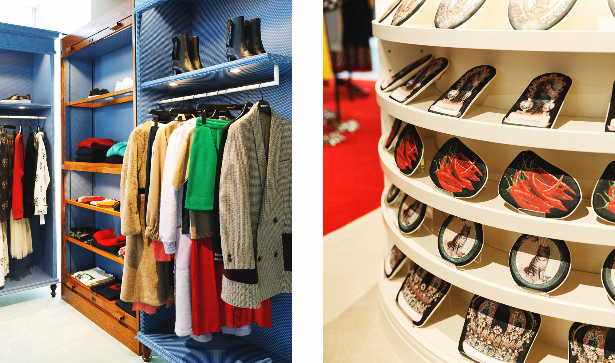 最大の特徴は、UNDERCOVERのメンズ&ウィメンズを筆頭に、SueUNDERCOVERやJohnUNDERCOVERのコレクションも並び、さらにはMADSTORE UNDERCOVERのアイテムや雑貨、コラボアイテムも同時に手に取れること。ラインごとに陳列された店内は、それぞれのコンセプトを投影した異なる内装デザインが採用され、多面的で混沌とした世界観をショップ全体で表現している。それは、メゾンからストリートまで多彩なファッションブランドが出店し、ボーダーレスにカルチャーが入り混じる渋谷PARCOと調和するかのようだ。