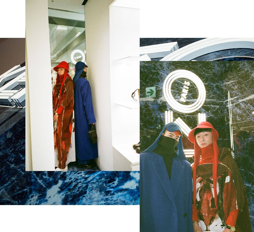 今や東京を代表するファッションアイコンであり、世界中のファッションイベントに引っ張りだこの日韓ボーイズカップル、TAIKIさん(写真左/日本)とNOAHさん(写真右/韓国)。2人がいま注目している渋谷PARCO内のショップをクルーズ。今シーズンより新デザイナーが就任し、早くもデビュー作がラインナップしている「KENZO」。そして、CEOでありアーティストのVERBAL、Dior Hommeのジュエリーデザイナーとしても活躍するYOON自身のブランド「AMBUSH®」を訪問した。