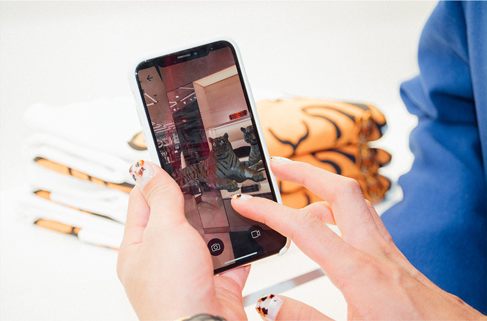 KENZOは、WWF(世界自然保護基金)とタッグを組み、絶滅の危機に瀕している野生トラの保護活動を目的としたカプセルコレクションを展開。グラフィカルなトラのプリントが施されたフーディ、Tシャツなどがラインナップ。素材はすべて100%オーガニックコットンを使用し、アイテム1点の売上ごとに$10がプロジェクトに寄付されるという。2人が楽しんでいた、リアルなトラのARが飛び出すアプリもぜひチェックしてみて。