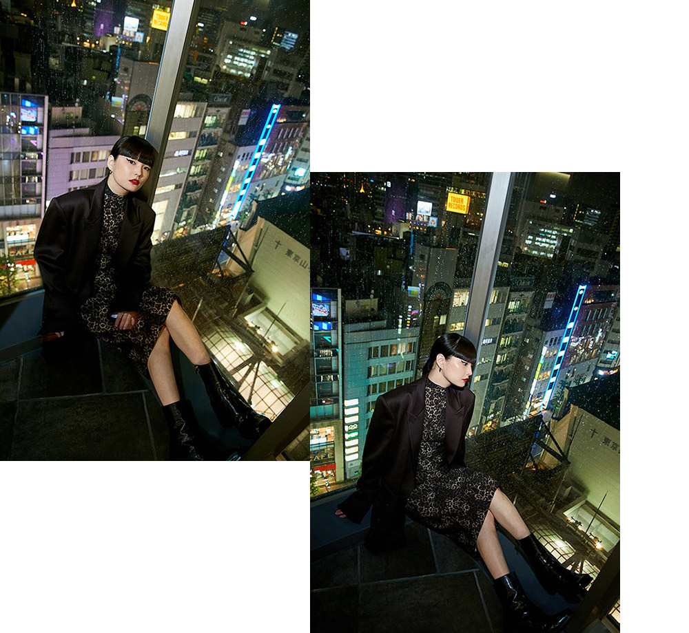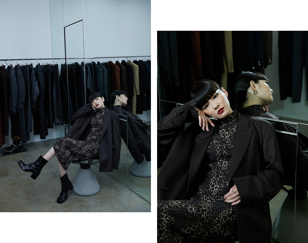 「今もですが、昔はよりメンズ服をよく着てました」と、この日もメンズサイズのジャケットをレオパード柄のドレスに合わせたJOHN LAWRENCE SULLIVANらしいマニッシュな着こなしで登場した秋元さん。「メンズやレディース、ジャンルに捉われないで、自分が好きだったらなんでも着ていいと思う。渋谷や原宿って特にそういう街なのかなと思います。渋谷PARCOのような館は、目的のお店があっても、その道中で新しいブランドを知れたり、発見や出会いがあるのも良さのひとつですよね」。
