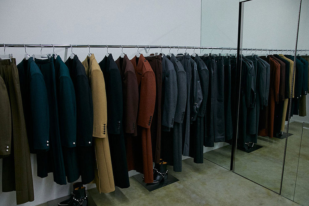 今シーズンのサリバンはドイツの映画監督、ヴィム・ヴェンダースの『Wings of Desire』と、同じくドイツのコンテンポラリーダンスの振付師でありダンサーのピナ・バウシュのパフォーマンスにインスパイアされたコレクションを発表。ブランドらしいテーラリング技術が光るロングコートは、パールボタンで折り目を飾ったり、ステッチでギャザーを入れるなどでウエストを強調し、その世界観を表現。「デザイナーの(柳川)荒士さんの世界観が好きなんです。デニムジャケットはカジュアルなアイテムだけど、そこにベルトを足しちゃうあたり、さすが荒士さん!レディースはデニムシャツ、メンズはデニムシャツジャケット。サリバンならではの、メンズもレディースも選べるのがまた最高に魅力的」。