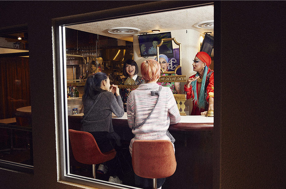 ブルボンヌさんを筆頭に名を連ねるのは、個性豊かなドラァグクイーンたち。お店に立つのは1〜2名で日替わりで変わる。これには、“何回か通って相性の良いスタッフに出会ってほしい”というお店の思いが込められているという。どのスタッフにも共通しているのがお喋り好きで人を繋げるのが好きだということ。「お店の窓が大きくて店内が見えるので、初めての人でも入りやすい。朝の4時まで開いているなんて、また絶対遊びに来たい!」(希子)。