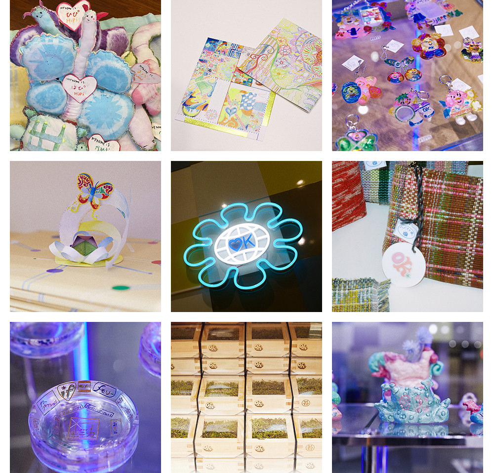 水原希子が立ち上げたプロジェクト「OK」が期間限定のPOP UPストア「OK PLAZA」を渋谷PARCOで開催。水色とイエロー、白のポップなカラータイルにネオンライトが瞬く、フューチャリスティックでどこか懐かしいムードの店内は「OK」ワールド全開。水原希子が共感する、世界中の友人やクリエイターたちが今回のPOP UPショップのために制作した作品が一堂に集結した。