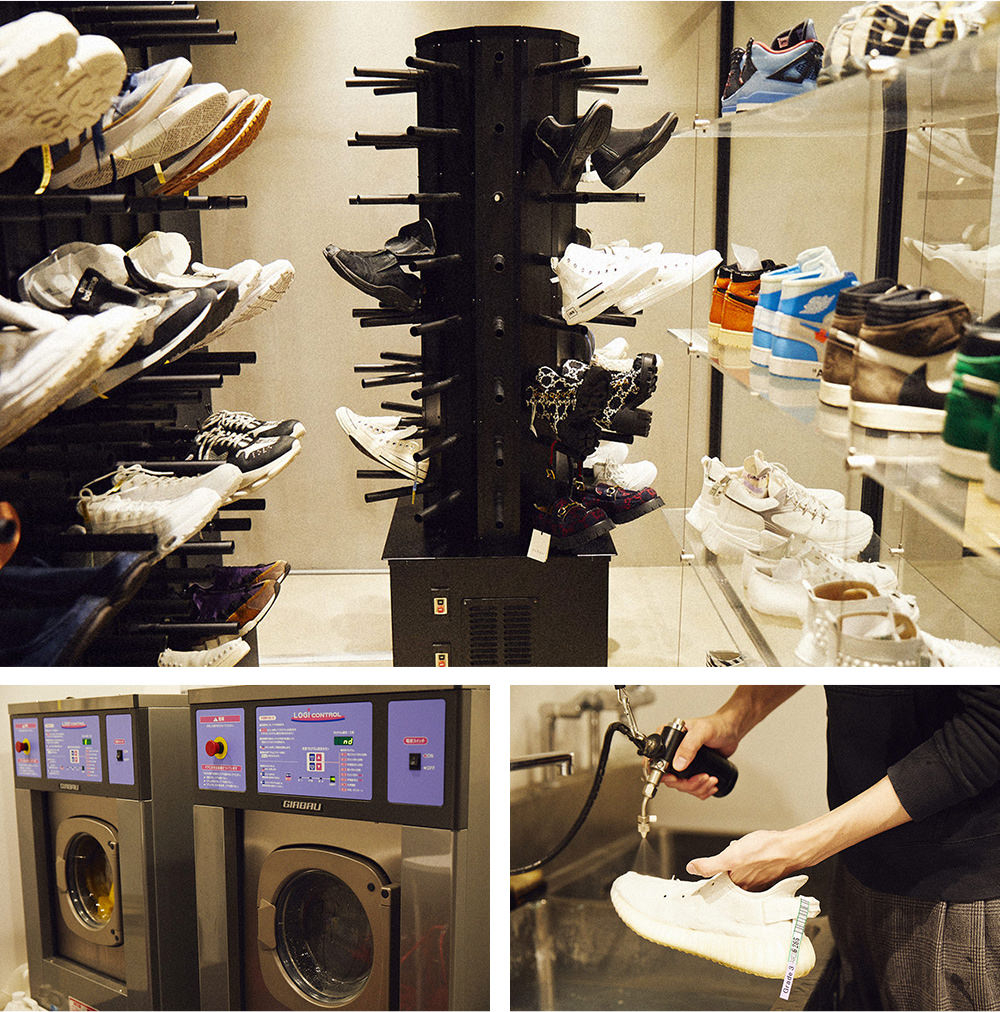 4Fには、洋服やシューズのリペアができるサービスや専門店が充実。クリーニングショップ「Licue&Sneakers(リクエ&スニーカーズ)」は、シューズの素材や汚れの状態に合わせた、ファッショニスタも大満足のオーダーメイドの水洗いを提供している。「履き古したスニーカーも新品みたいになるんだね。家にある大量のスニーカーを持ち込みたい。たくさん履いても、すぐに捨てなくて良くなるのは嬉しいね」(希子)。