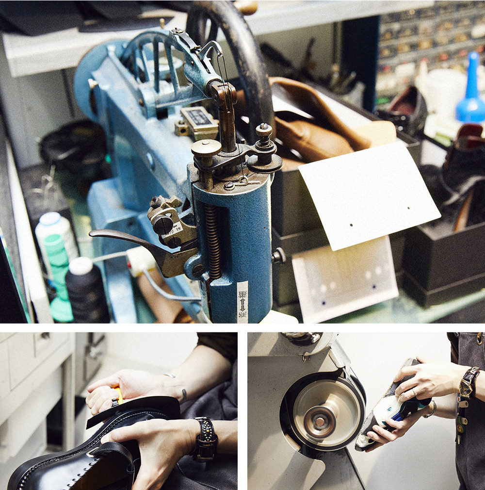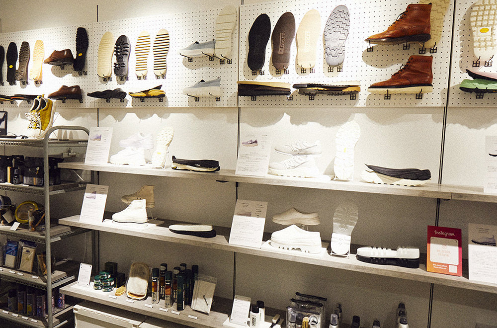 驚きなのは、スニーカーや革靴に様々なソールをチョイスし、自由にカスタマイズできること。ビブラムソールやシャークソールなどデザイン性と機能性を備えたソールに交換することで、使い古した靴に付加価値を与えることができる。「市販では見られないような組み合わせもできて、ソールの色や素材がたくさん!」(佑果)。厚底にするなど、自分だけのオリジナルデザインをオーダーできる。
