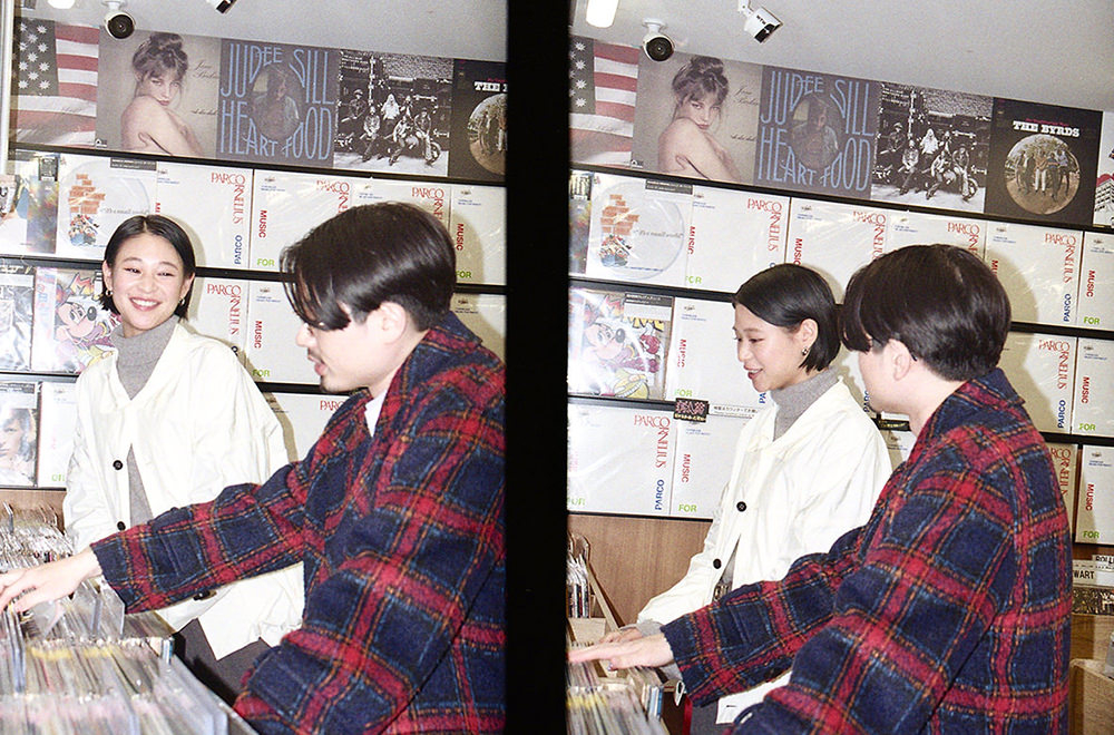 「ユニオンレコード渋谷」は新譜も多く扱っており、オールジャンルでバランス良く揃えている点が特徴。現在は、コーネリアスの小山田圭吾氏(@corneliusofficial)が渋谷PARCO1周年を祝して書き下ろしたオリジナルBGM収録のレコードが注目商品。ジャケットは北山雅和氏 (@ktymmasakazu)によるデザイン。二人は共にイギリスのロックが好きというのが共通点ということで、レッド・ツェッペリンやザ・フーなど、好きなバンドの話で盛り上がっていた。音楽談義で盛り上がれるのも、レコードショップデートならではの楽しみ方だ。
