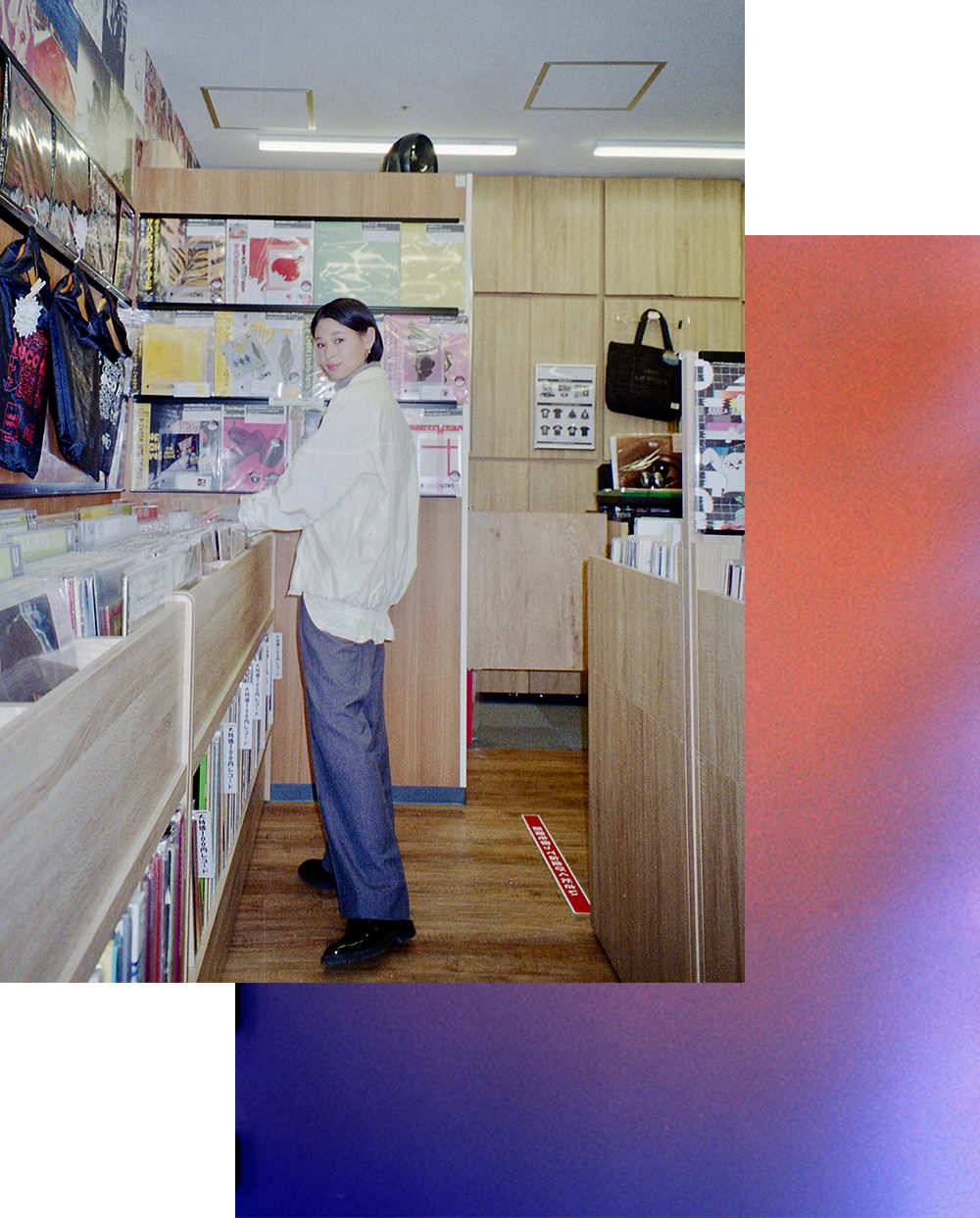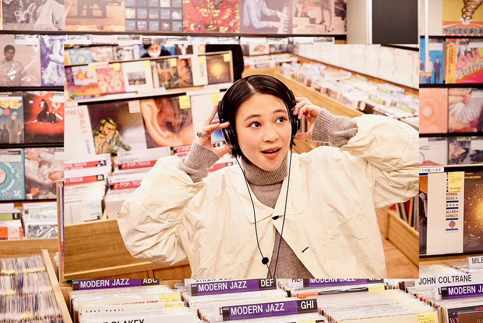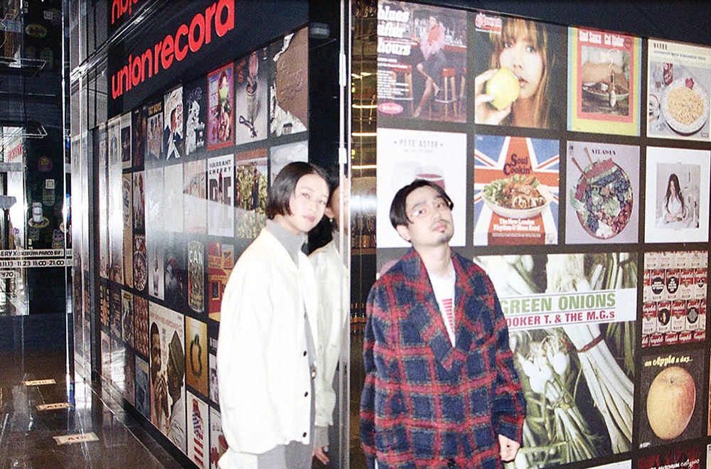 これまでユニオンレコードの別店舗にはもちろんよく通っていたという2人。「ユニオンは特別です。前まで東京にしかなかったので、東京のレコード好きの特権だと思ってました」とハマさん。miuさんの「新宿店のフロアを行き来する階段を昇り降りするのが好き(笑)」という意見にハマさんも「いいよね、あの階段」と通な2人ならではのマニアックな目線。渋谷PARCO店といえば食と音楽とカルチャーが入り乱れるB1Fにて、一際目を惹く壁面が目印。よく見ると、どれも食べ物や飲み物がモチーフとなった名盤のアートワークばかりで、気付くとなんだかクスッと笑えてくる。