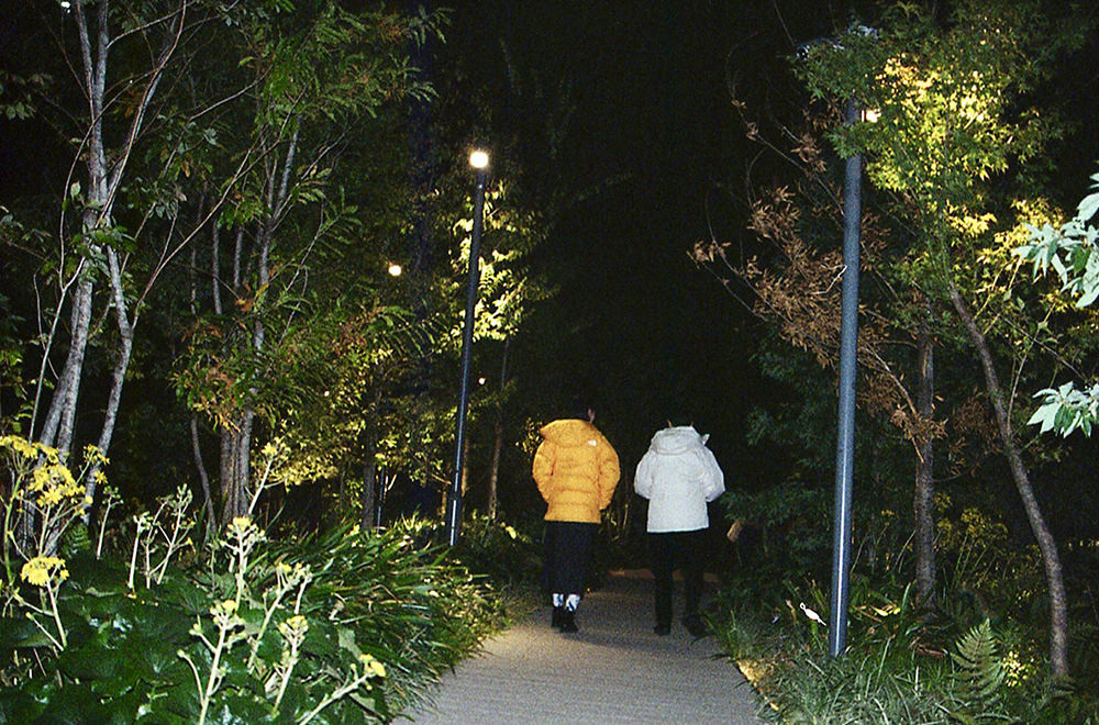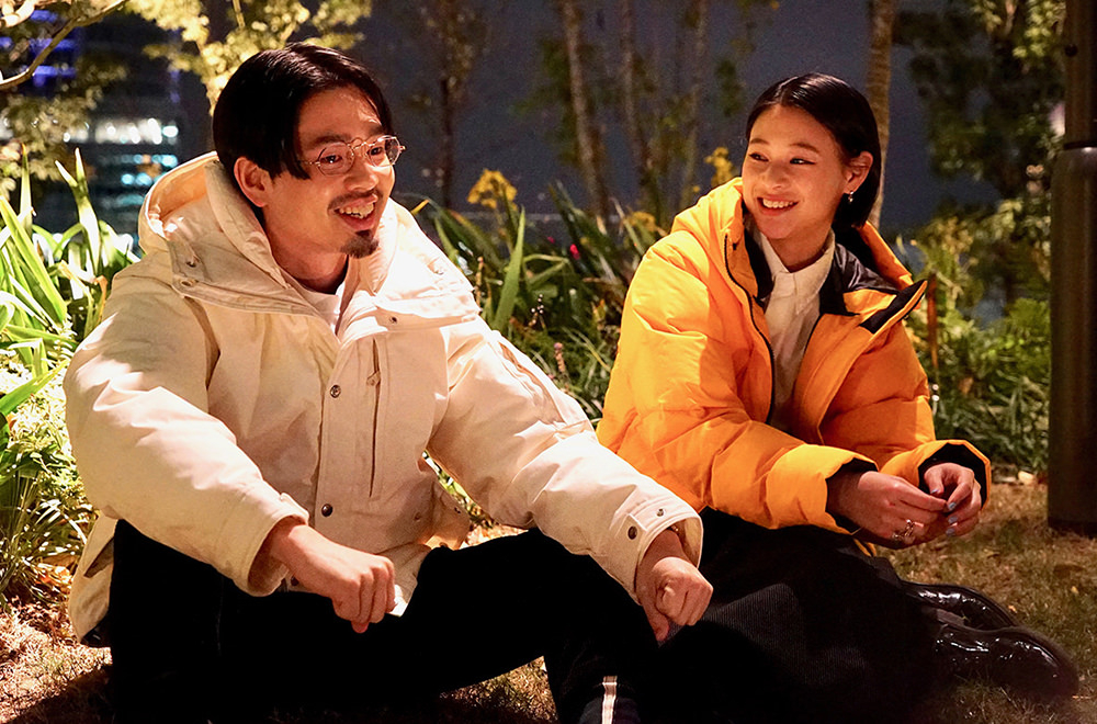 冬の空気で覆われた渋谷は、みんな何処となく浮足立っていて、なんだかいつもより少しロマンチックに見えてくる。10Fに位置する「ROOFTOP PARK」はそんな街の景色を一望できる場所だ。昼は東に渋谷の駅ビル群、西に富士山が見える日もある。そして、暗くなるにつれて姿を表すのは、煌びやかな夜景と幻想的にライトアップされた広場。そんな少し肌寒い夜のデートにうってつけなのは、「THE NORTH FACE」の代名詞であるダウンジャケットかもしれない。年代性別関係なく着られる人気の機能性アウターとあって、ハマさんとmiuさんの2人もかなり快適な様子。miuさんはハマさんのジャケットを見て、「サラッと自然に着れる白で良いですね」と好印象。寒空の下でも2人の会話は弾んでいた。