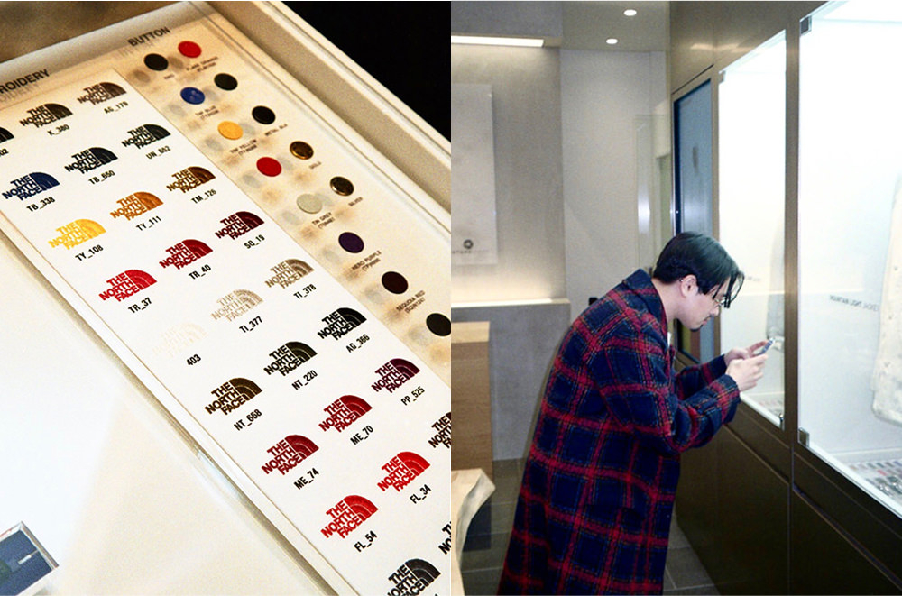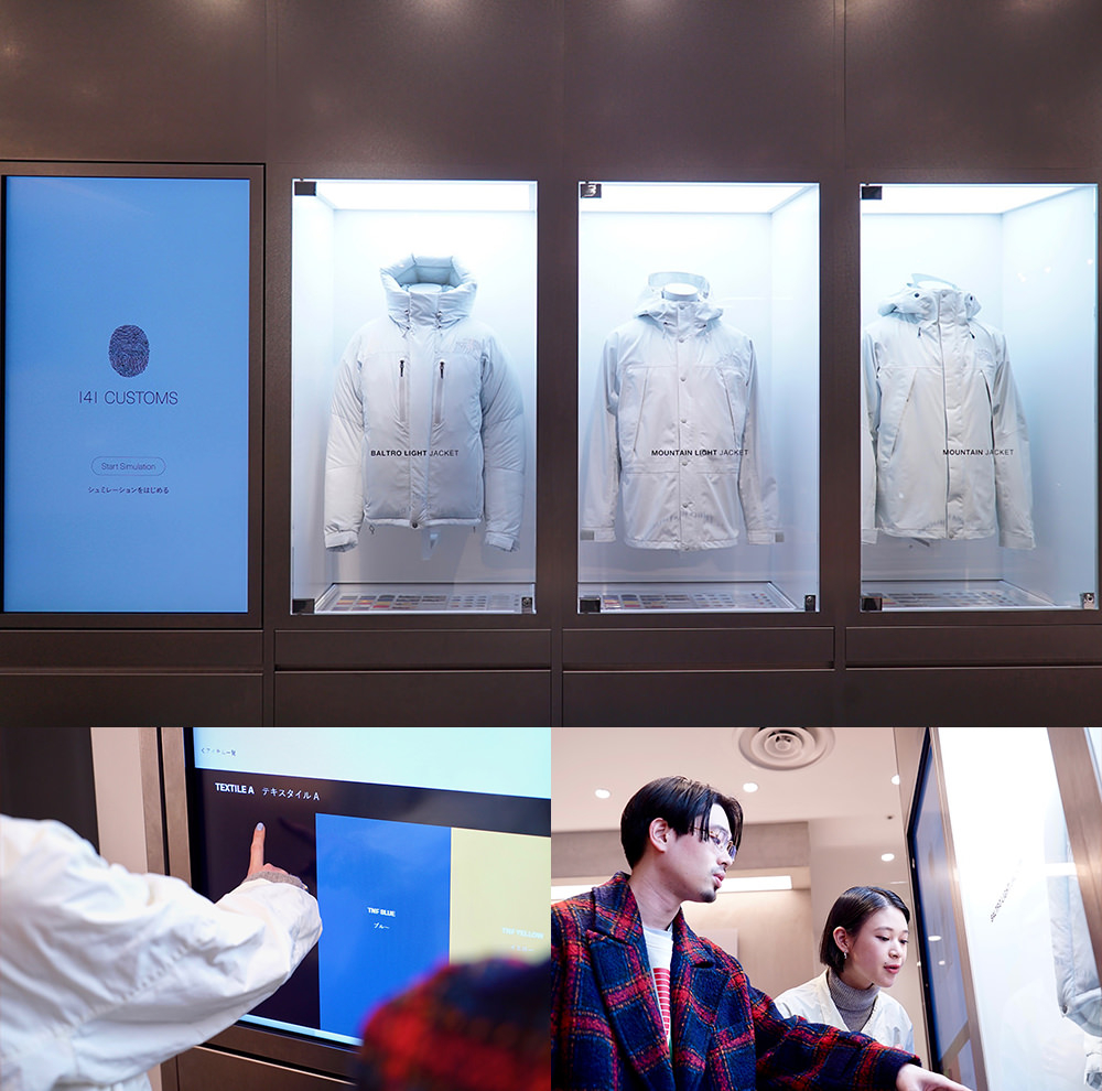 屋上デートで改めてTHE NORTH FACEの魅力を知った2人は、2Fにある「THE NORTH FACE LAB(ザ ノース フェイス ラボ)」へ。このショップ最大の魅力は、ウェアを自分好みにオーダーできる「141CUSTOMS」というブランド初の試みとなる渋谷PARCO限定のカスタマイズサービス。なんと店内にある3Dスキャナーで体型を測定して、自分の身体に合ったサイズと好みの色を自由に組み合わせた世界に一つだけのアウトドアウェアを作ることができるというもの。2人は実際にタッチパネルを操作してみることに。「このマジックテープの部分クイックロンって言うんですね」と細かいパーツまで色を変えれることに驚くハマさん。miuさんは「私はブラックをベースにボタンや紐などを好きなブルーにして、さり気ないおしゃれなジャケットを作ってみたい」と夢を膨らませていた。
