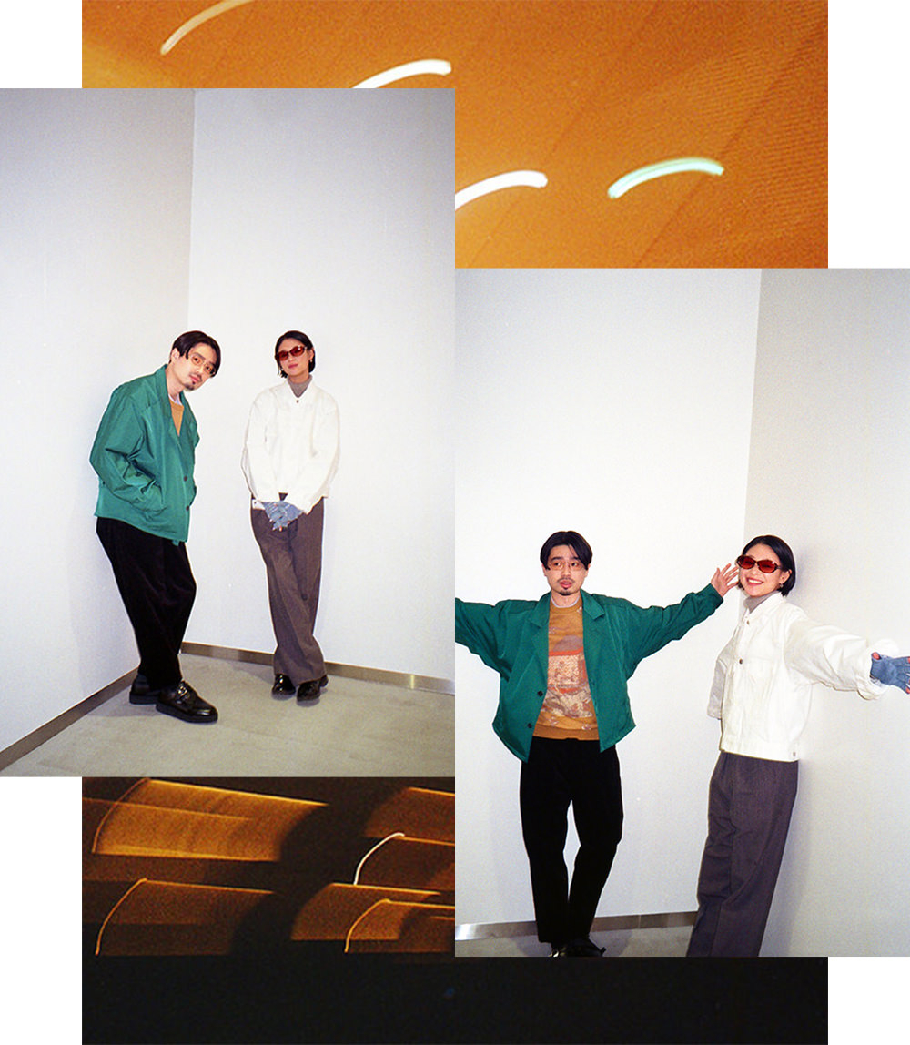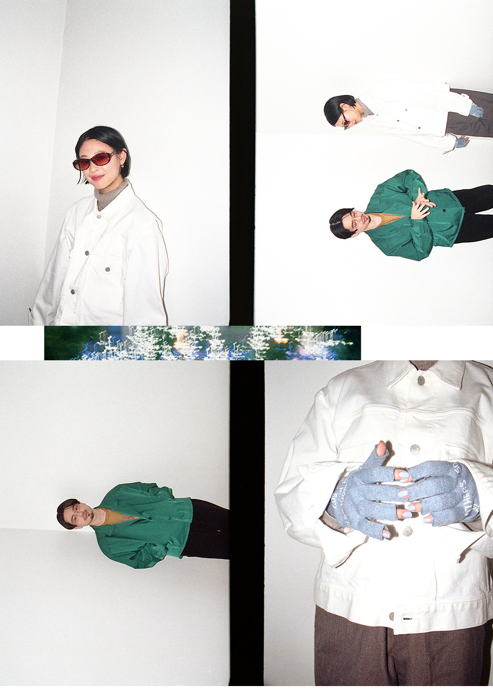 セレクトショップである「FAN」は、起源と発展“roots & development”をテーマに、過去に古着も取り扱っていた事から派生し、モードやハイテク、ストリートブランドなど幅広いアイテムを渋谷で見れるようにと誕生。そんな同ショップにて、2人が実際に気になったアイテムを着てシューティング。ハマさんは「お店に入ってすぐに良いなと思いました」という発色の良い緑のジャケットをチョイス。miuさんは、白のジャケットと「気付いたら掛けていた」という気鋭スケートブランド「HELLRAZOR」のサングラスを。「40〜50年代っぽいというか、鋭利な形のサングラス似合うよね」とハマさんも納得のmiuさんらしいストリートスタイルを披露してくれた。
