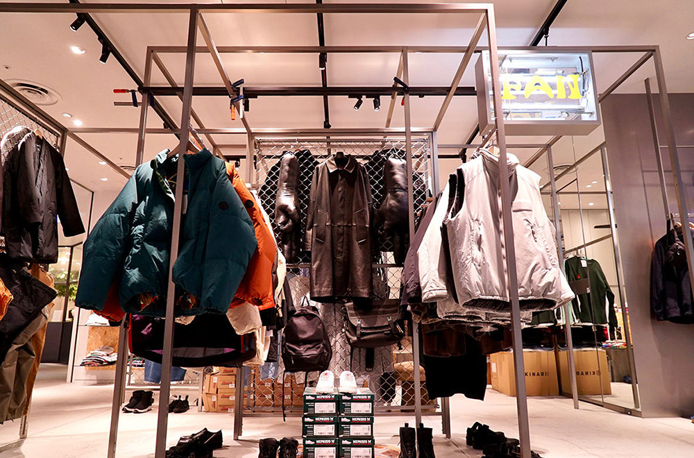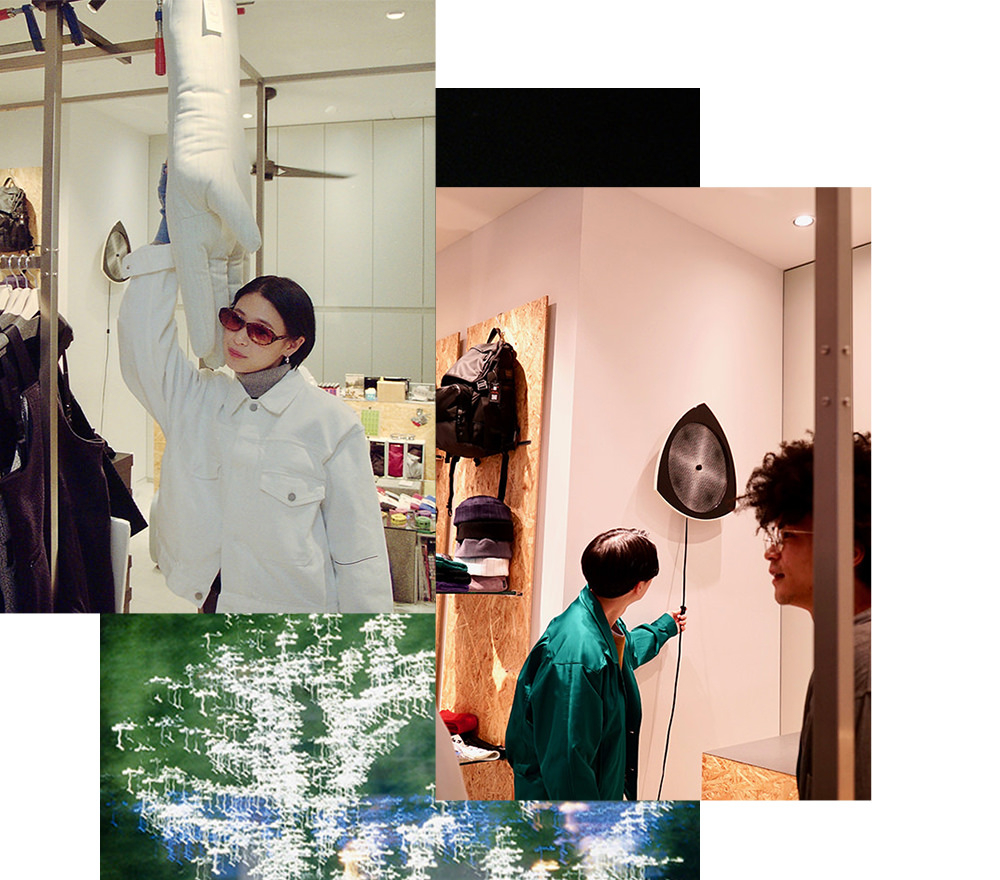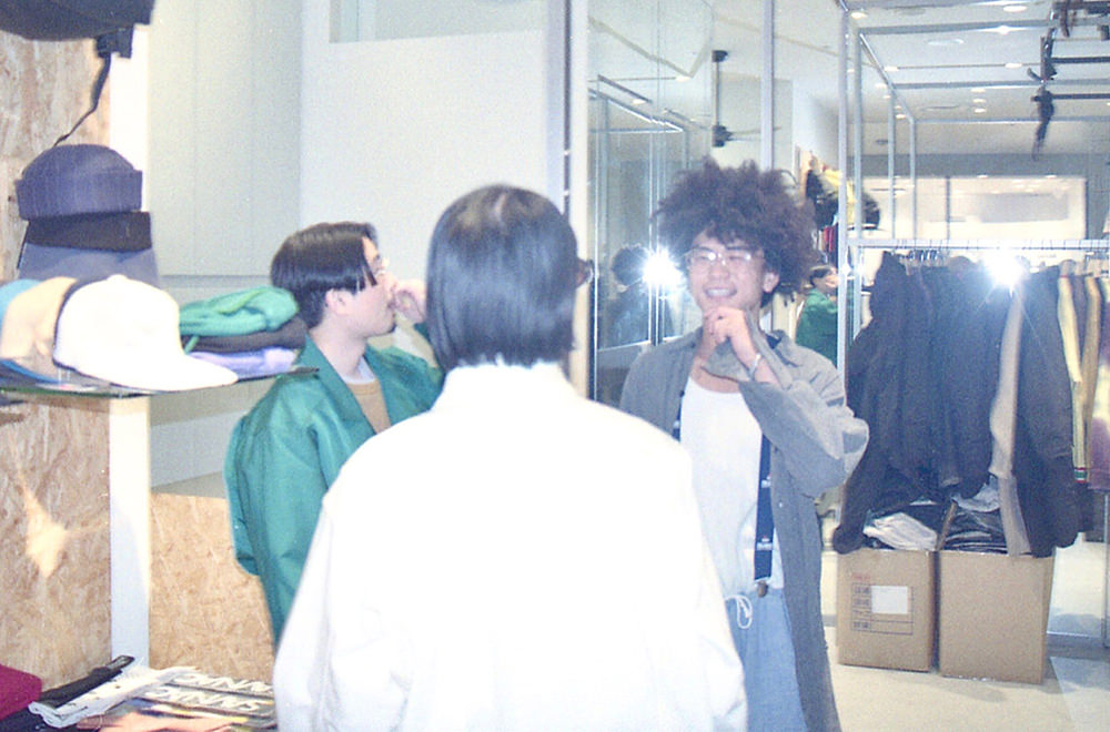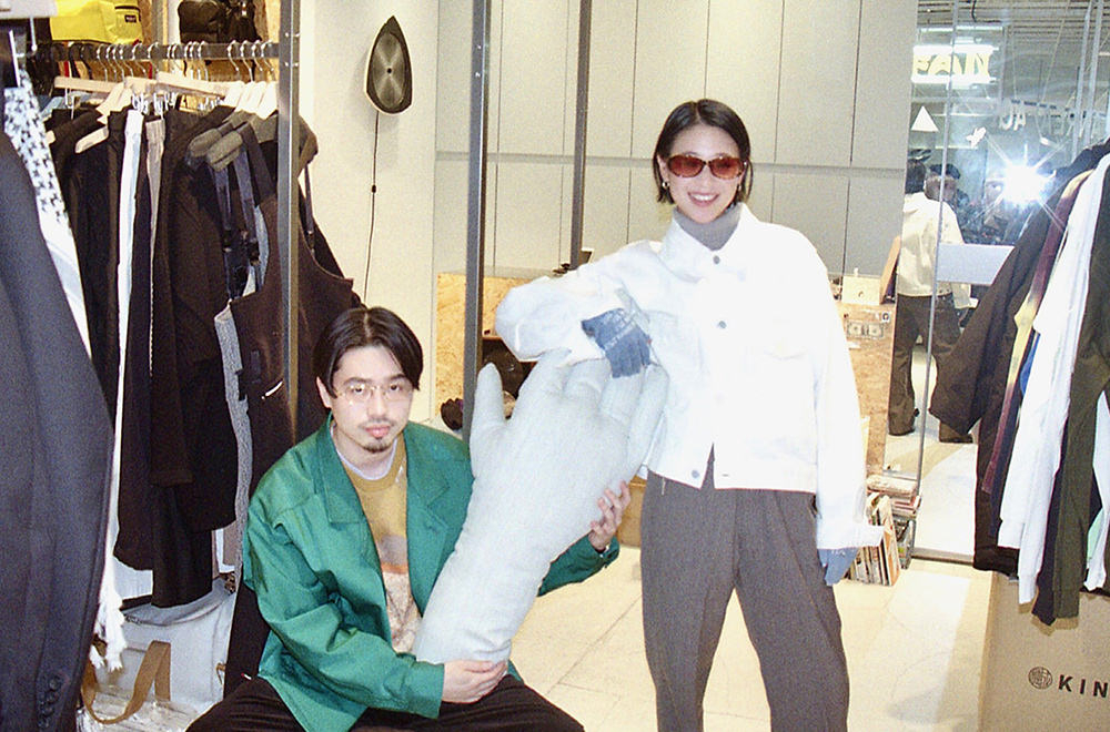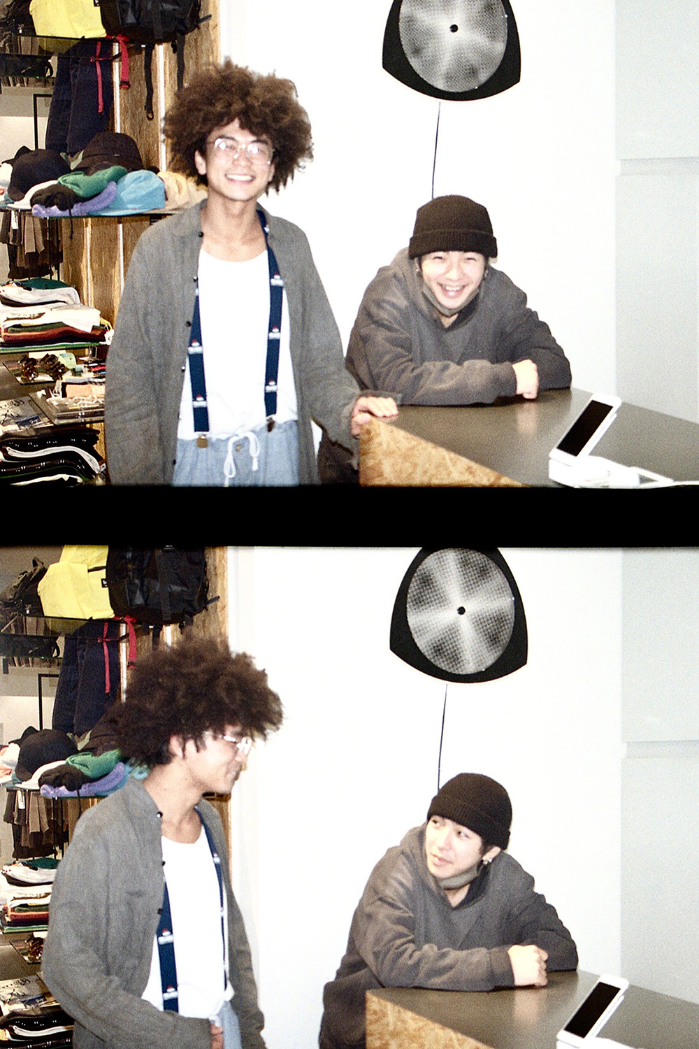 2人が気になっていた手の形をしたアイテムは、なんと腕枕。デザインユニット「レイチョウルイラボ」が手掛けるレーベル「O-(オー)」と「HEALTH」の共作アイテム。ブラックはFAN限定。他にもプロスケーターの上野伸平率いる「TIGHTBOOTH」の15周年アイテムなど、注目のアイテムが目白押し。一見ガチャっとしているけど、店員に良いもの入ってますかと聞くと必ずおもしろいものが出てくる、そんなレコード屋のような温かみのあるお店にしたいと店長の伊藤さんは言う。