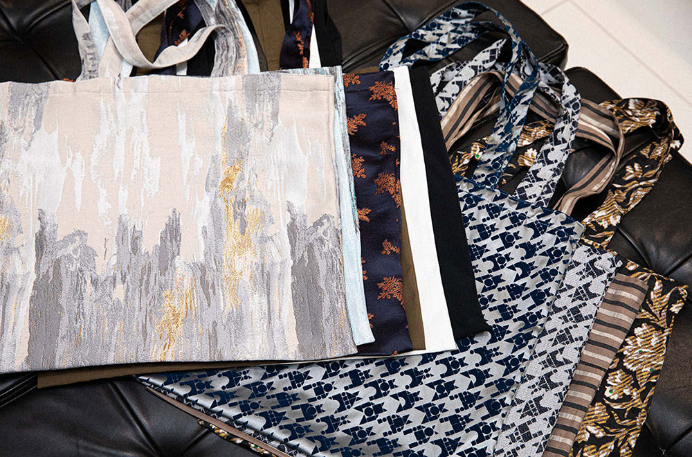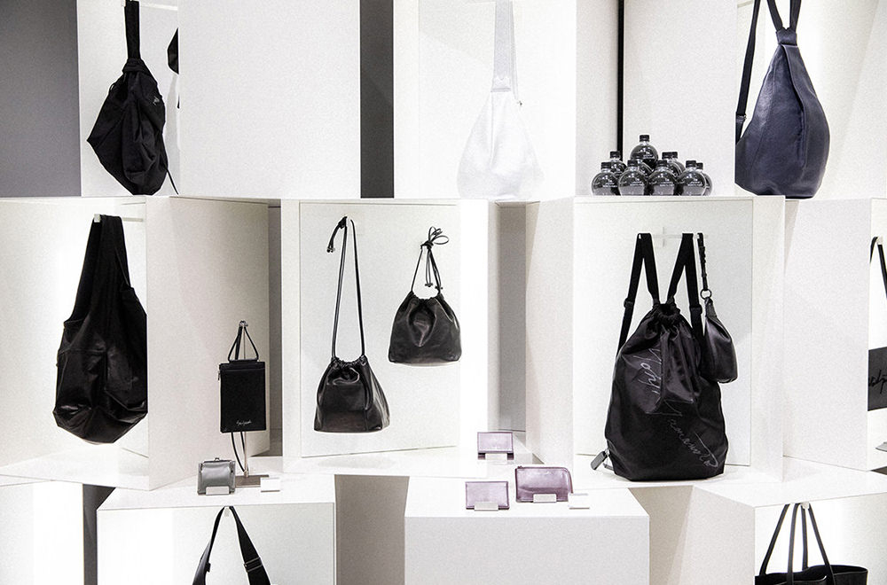 左_Drawstring Bag ¥39,000+tax右_(上から順に)compact wallet ¥28,000+tax、short wallet ¥29,000+tax、card holder ¥17,000+tax