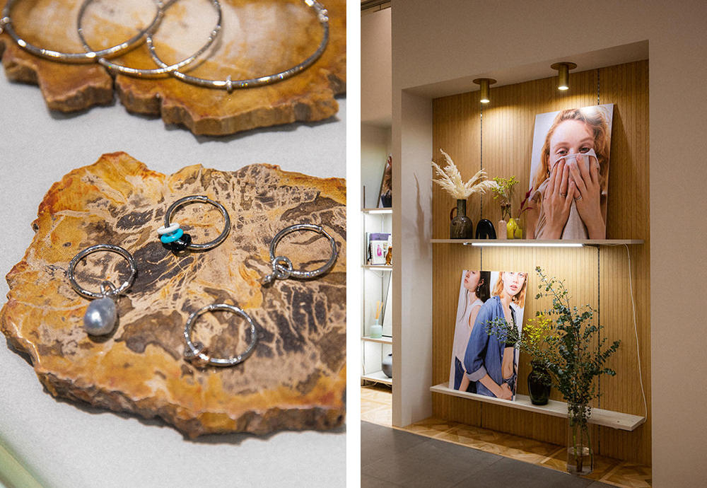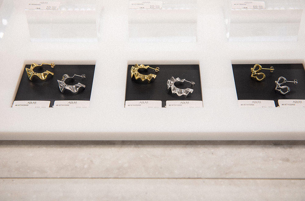 <AHKAH × KOTA OKUDA>(左から順に)スウィンギー ピアス 各¥28,000+tax、グルーヴィ ピアス 各¥28,000+tax、アンパサンド リンク ピアス 各¥22,000+tax