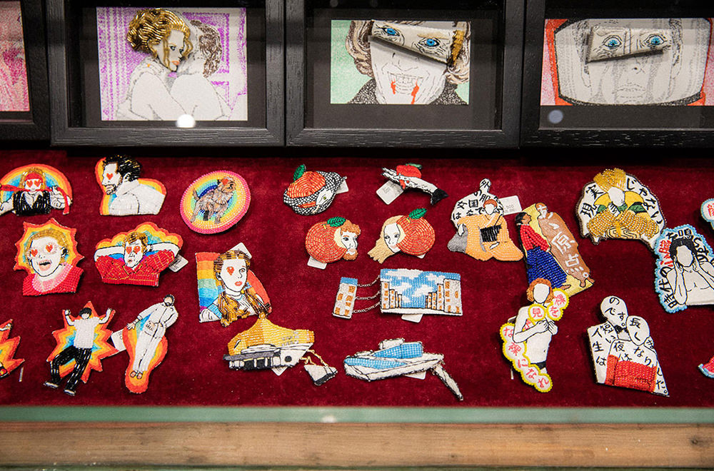 石岡瑛子氏がアートディレクター時代に関わったPARCO広告をオマージュした、「odddot」(@_odddot_)のブローチ。ART BROOCH アートブローチ 各¥23,000〜¥26,000+tax