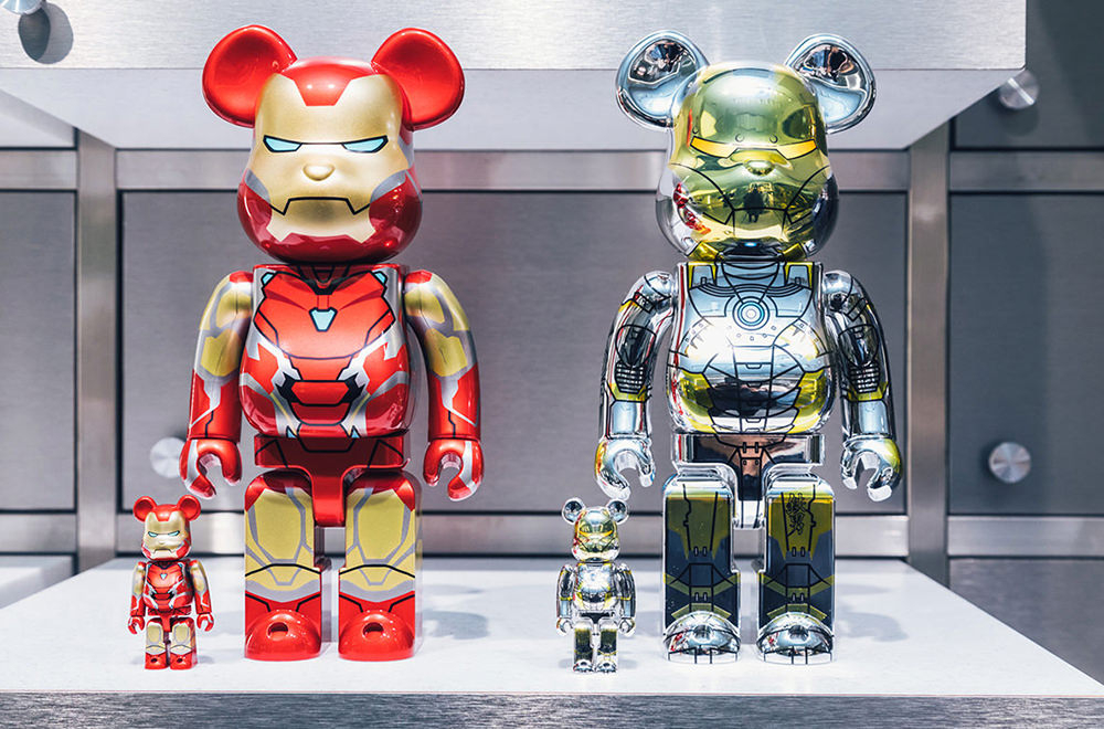 左_BE@RBRICK IRON MAN MARK 85 100% & 400% ¥15,000+tax、右_BE@RBRICK SORAYAMA IRON MAN 100% & 400% ¥20,000+tax
