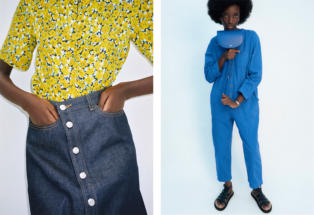 (左)シャツ ¥32,000、スカート ¥20,000、(右)コンビネゾン ¥42,000(すべてtax in)、その他参考商品