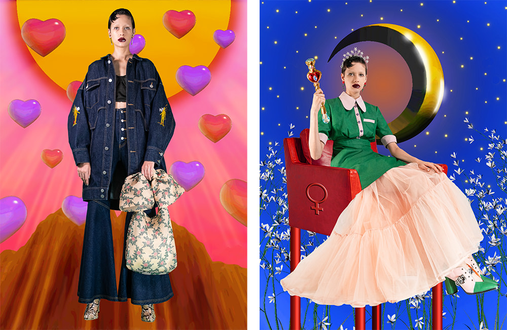 DJとしても活躍するPELIがディレクター兼デザイナーを務めるブランド「PAMEO POSE」。2021 S/Sコレクションは、タロットカードの中でも大きな人生の流れを示すとされる22枚の大アルカナカードをイメージしたもの。The Loversのアダムとイヴが両袖に刺繍されているデニムジャケットや、Magicianのカードに描かれた薔薇を編み込んだニットビスチェとニットスカートなど、ドリーミーかつミステリアスなムードにて構成している。後者はスニーカーなどのカジュアルなスタイルにはもちろん、パンプスやジュエリーを合わせたオケージョン使いにもおすすめ。