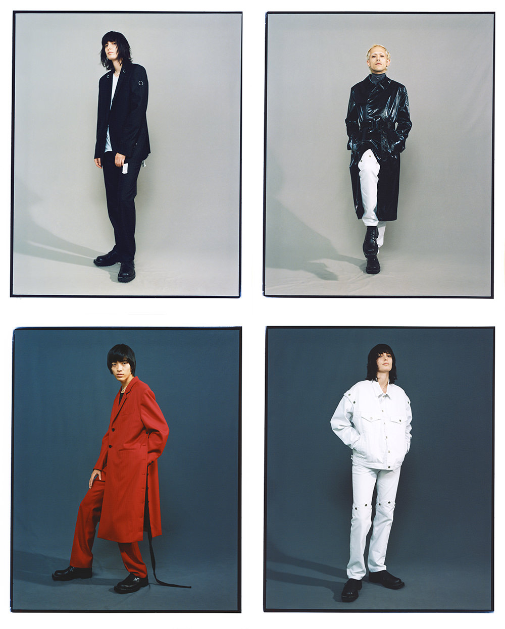 テーラードを軸としたメンズウェアの基本コンセプトをウィメンズにも落とし込み、強さとエレガントさを併せ持つマスキュリンなスタイルを特徴とする「JOHN LAWRENCE SULLIVAN」。今シーズンは、アメリカの写真家であるロバート・メイプルソープの洗練された美学と性の解放という衝撃的な世界観からインスパイアされ、その象徴としてボディピアスを様々なアイテムへ貫通させフェティシズムを表現。そこにD管、ジップ、メタルボタンなどインダストリアルな要素も加え、ブランドらしいコレクションに仕上げた。