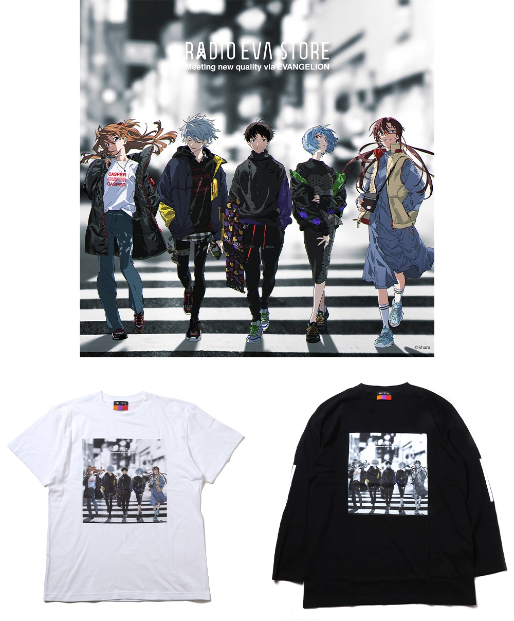 「日常に溶け込むエヴァンゲリオン」をコンセプトにする「RADIO EVA STORE」。渋谷PARCO店オープン1周年を祝し、人気クリエイターであるさん米山舞氏による描き下ろしイラストを落とし込んだ「Mai Yoneyama New Collection」が登場。イラストの世界観や魅力を最大限に活かすため、ボディーはモノトーンのみで展開。最新のRADIO EVAアイテムで全身コーディネートしたお洒落な碇シンジや綾波レイたちが勢揃い。米山氏のスタイリッシュなイラストをインクジェットプリントで施すことで自然な風合いに仕上げたハイセンスなコレクションに仕上がっている。