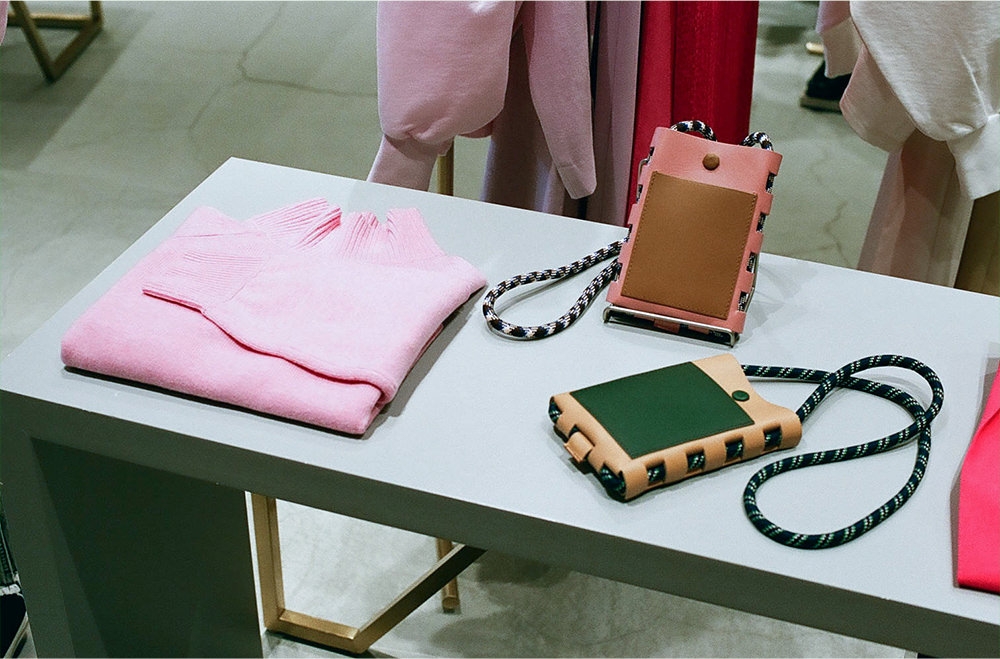 洋服だけでなく、バッグやシューズ、アクセサリーといった小物類にも、物欲が高まる。なかには、今回のコラボが叶ったブランド、TRICOTÉの新作レザーポシェットも。ちょっとしたお出かけにも重宝する小さめサイズながら、大きな存在感を放つ。いつ足を運んでも、ぐるりと見渡すだけでホットなニュースに必ず出会えるADAM ET ROPÉ FEMMEのお店。そこは、常に新しい時流の波を感じられる刺激的な空間だ。