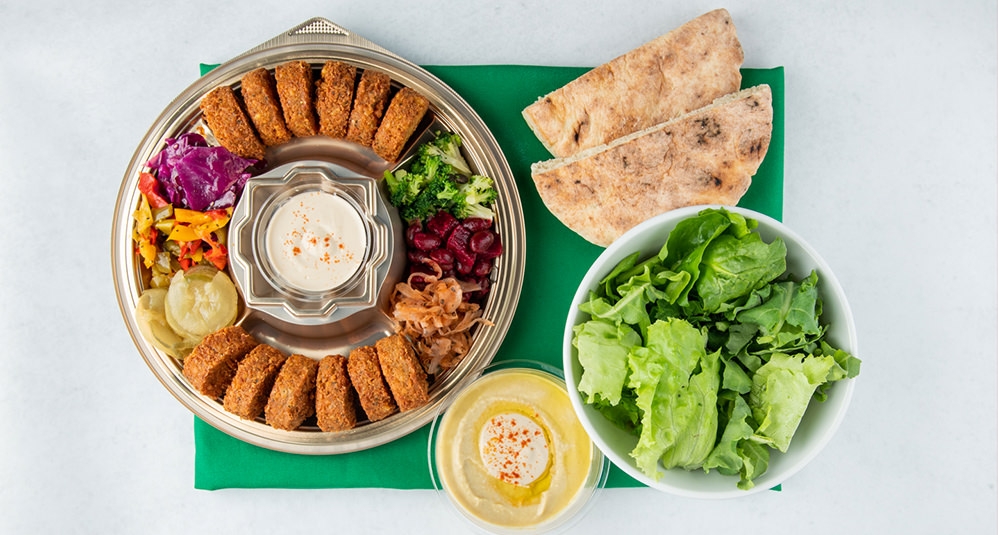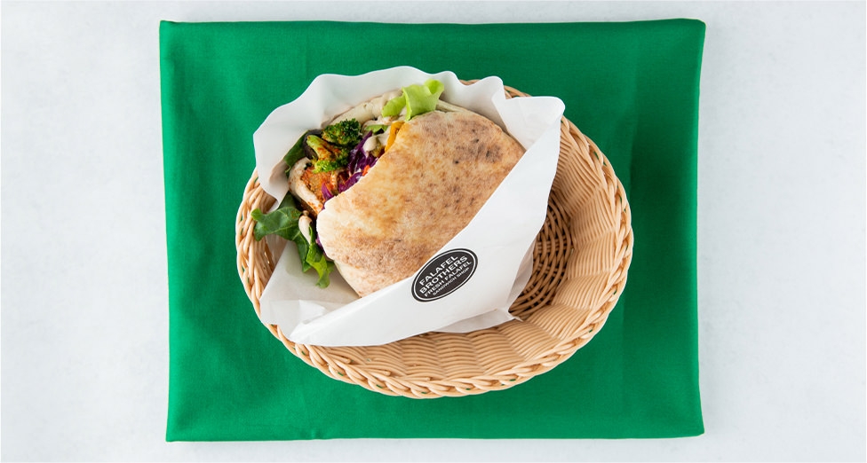 ファラフェルとは、ひよこ豆をベースに作られたイスラエル料理の定番メニュー。自宅でファラフェルパーティーが楽しめる「ブラザーズパーティーセット」なら、他の具材を組み合わせることでビーガンの人もそうでない人も共に満足できる。サラダにファラフェルとフムスを合わせた「ブラザーズサラダボール」や、イスラエルから直輸入しているフワフワのピタに野菜がたっぷり詰まった「フルサンドイッチ」はお店で人気の定番メニュー。
