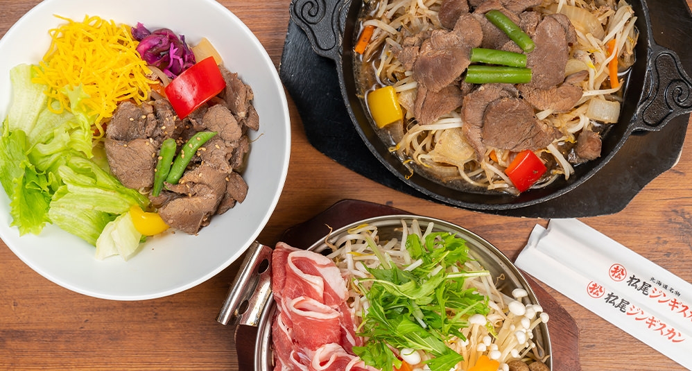 「松尾ジンギスカン」の美味しさの鍵を握っているのは加熱処理をせずに作る「生タレ」で、半世紀以上の歴史を誇る老舗の秘伝の味とも言える。たまねぎとりんごをたっぷりと使用した、フレッシュな味わいが特徴だ。看板メニューの特上ラムジンギスカン丼は、余分な脂やスジを手作業で取り除いており驚くほど柔らか。低カロリーでヘルシーなジンギスカンが、網焼きのステーキ、旨みたっぷりのカレーやタレとの相性抜群な卵とじ丼など多彩なメニューで味わえるのも嬉しい。
