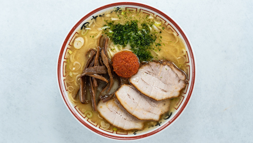 渋谷の真ん中にありながらラーメン屋台の原風景を思い起こさせる、小さめのどんぶりになみなみと注がれた「中華そば」が、Woltを使えば自宅でも堪能できる。濁らせないように丁寧に炊いた豚骨と、塩だれで味を整えた奥深い味わいのスープに、平打ちのちぢれ麺が良く合う。自家製だれで煮込んだチャーシューも絶品だ。「山形辛味噌らーめん」はまろやかな味わいのスープに、ニンニクの効いた辛味噌を溶かしながら食べる。表面にかかった青のりが、味のアクセント。