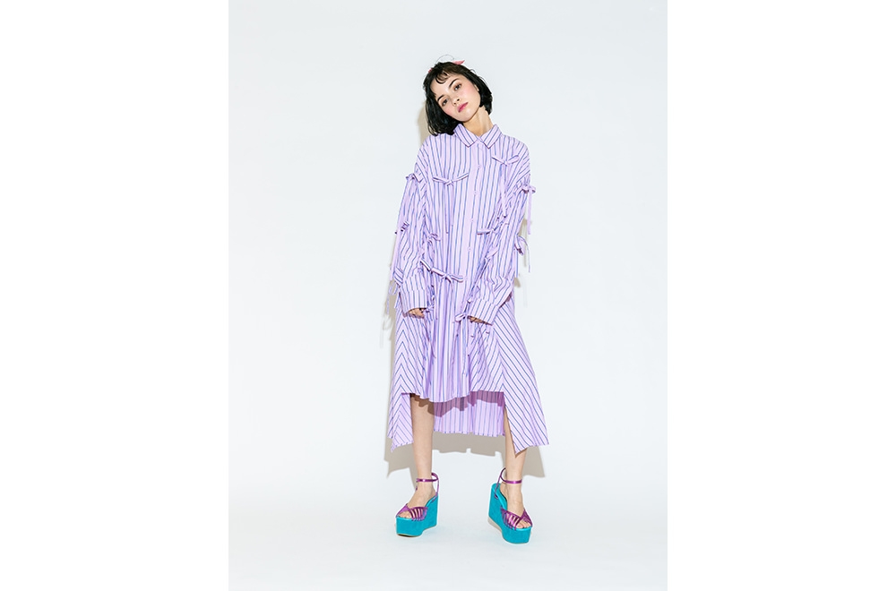 今季の「Candy Stripper」は、ランダムな法則性のデザインや異素材MIX感が心踊るアイテムが多数。細めのリボンを散りばめたデザインが特徴のシャツワンピース。CANDYロゴが愛らしいデニムセットアップやサイズの違うチェックで切り替えたポロワンピースをはじめ、その日の気分やムードによってテイストの異なる着こなしが楽しめるアイテムが揃えっている。
